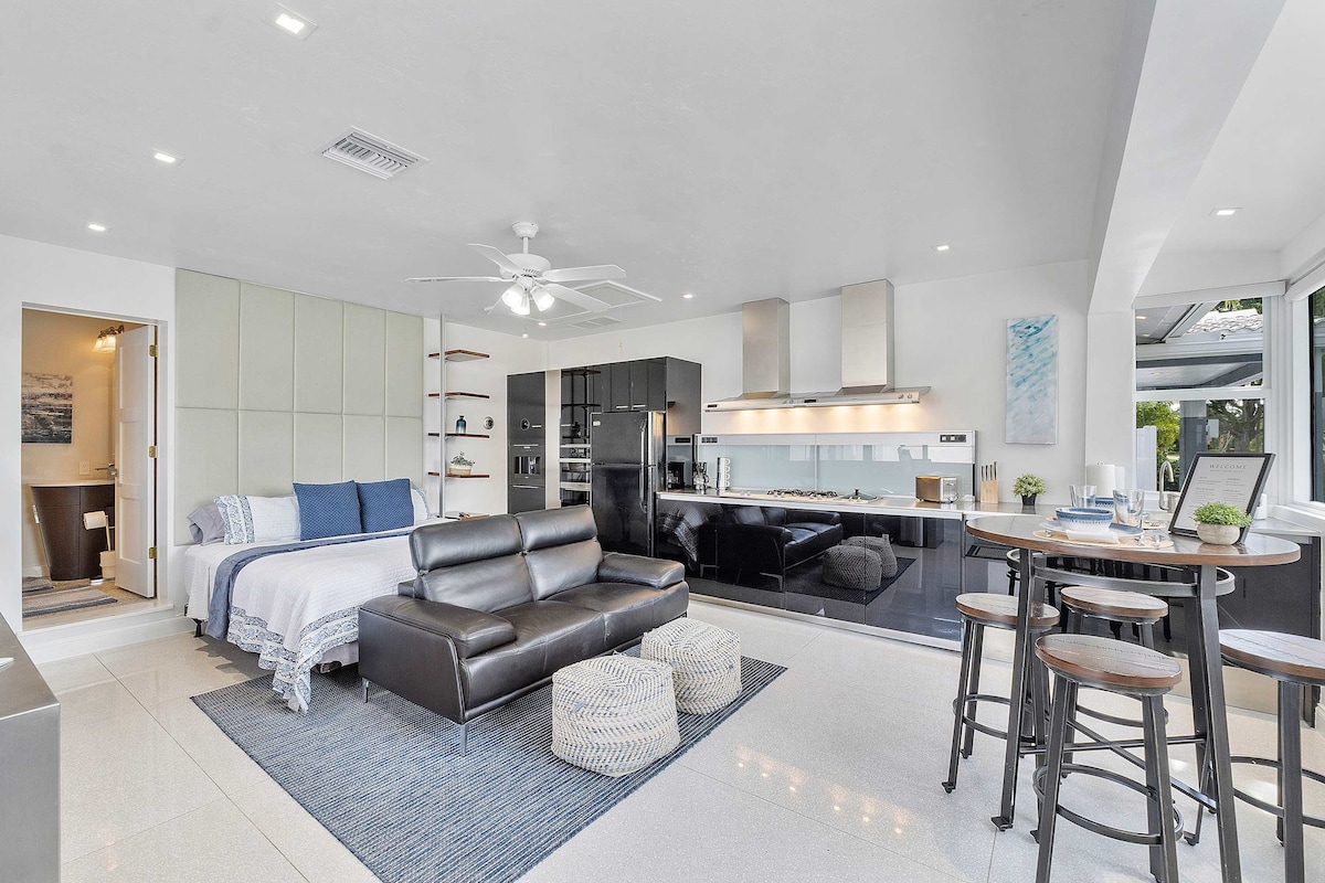 Completely remodeled designer vacation guesthouse with a heated pool and Jacuzzi hot tub, stainless steel appliances and many amenities. Plenty of free parking. The beach is a short 10 minute drive and the closest grocery store is 0.5 mile. There are tons of restaurants and the Wilton Manors nightlife is a stone's throw away. Or just chill by the pool and relax in the calm & quiet of the house. FLL airport is less than 15 minutes away. Easy to get to Fort Lauderdale or Miami.