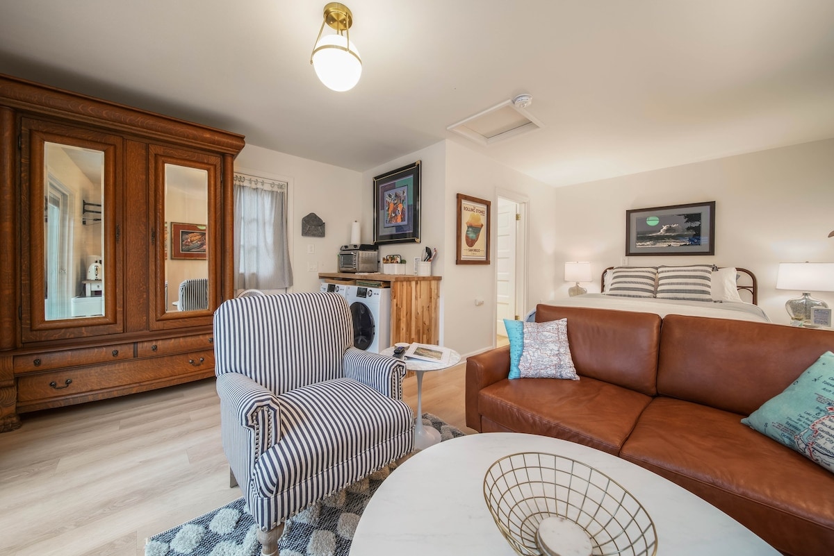 #StayinMyDistrict Sellwood Retreat! This private garden Retreat is located in the heart of Sellwood! Live like a local and experience a vibrant SE Portland neighborhood! Known for its “walkability” and “friendly neighborhood feel”! Walk (1 block) to local hotspots, nightlife, dining, coffee, & boutique shops, from this comfortably appointed Queen Studio Suite. Relax and enjoy a glass of wine on the private patio. Kitchenette & kitchen amenities, W/D in unit, FREE street parking!