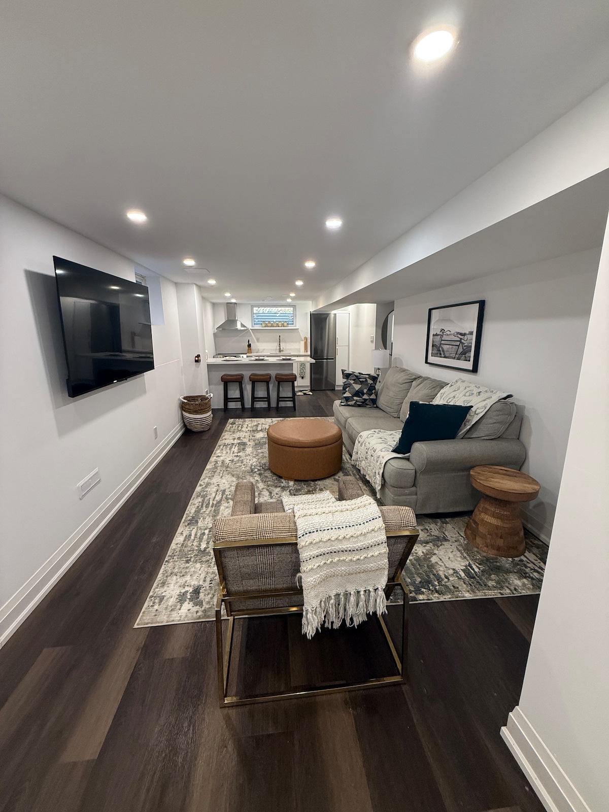 Enjoy a stylish and peaceful stay at this centrally located one-bedroom lower-level unit, perfect for both leisure and business travelers. With your private entrance, parking, and all the essentials, it’s your ideal home away from home. Features include a full kitchen, bathroom, internet, smart TV, one Queen and one sofa bed, and a functional workspace. Steps from FreshCo, Walmart, restaurants, and services. Minutes to Vaughan Mills, Canada’s Wonderland, Cortellucci Hospital and transit.