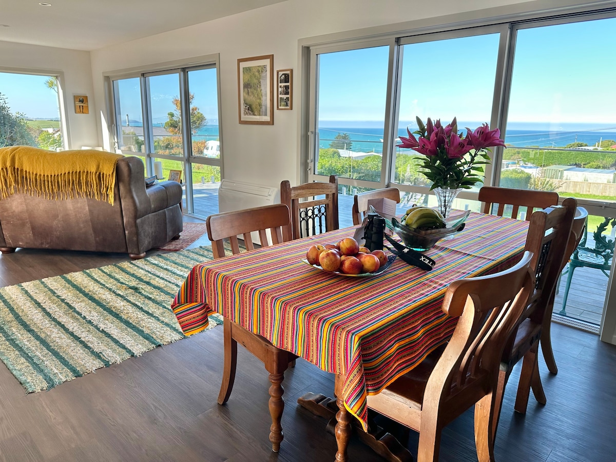 Seaside Serenity is everything the name suggests, with stunning, uninterrupted views of the Kakanui Coastline. Watch the seals sunbathing on the rocks, all just a short distance from the house balcony. Our spacious, modern home is ideal for a romantic getaway for two or a fun-filled weekend for the family.The house boasts direct sea views from all the living areas and the master bedroom. Curl up with a good book on the chairs in the lounge facing the sea, and you will feel relaxed in no time.