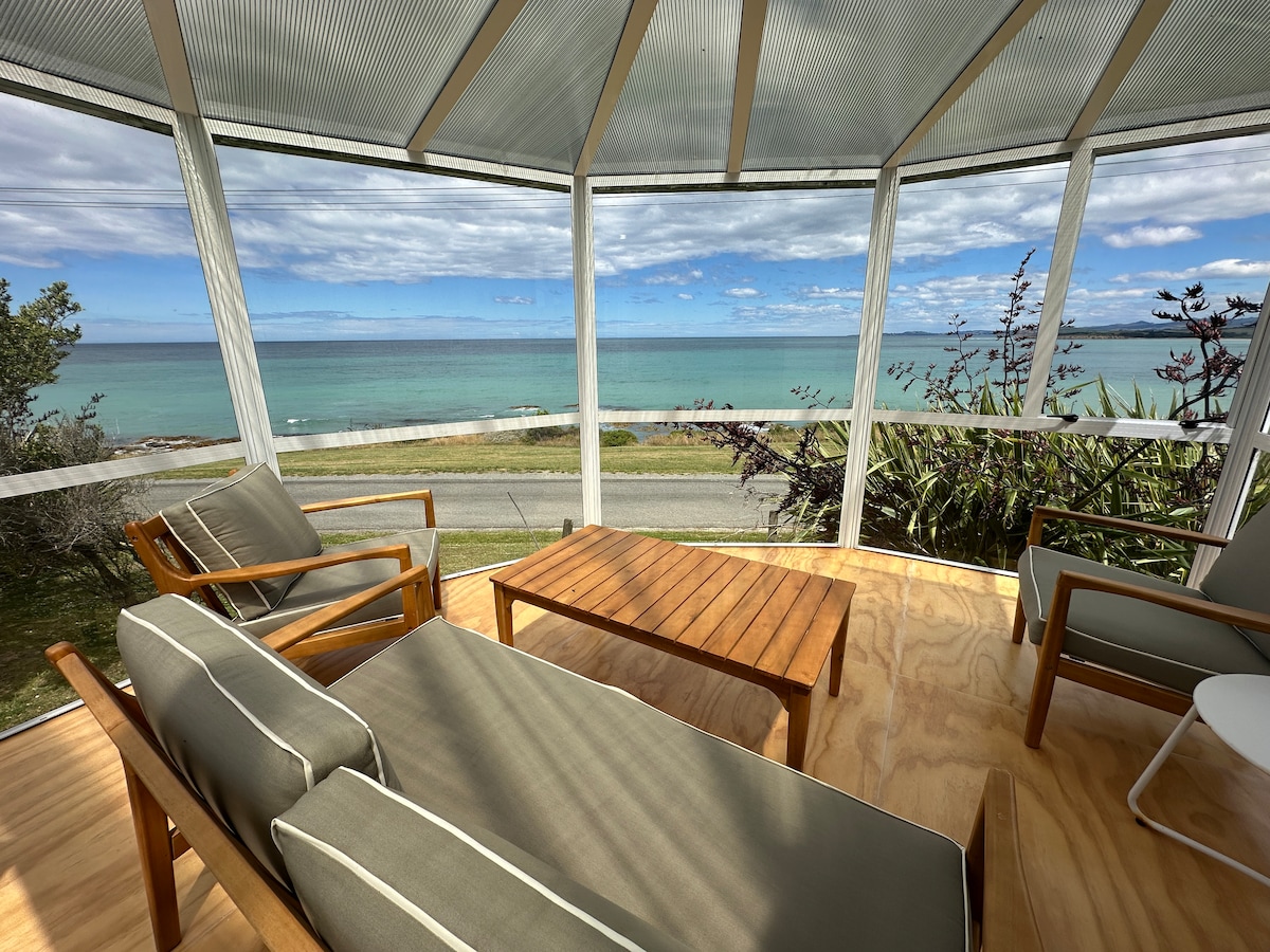 Take a break and unwind at this beachy village. 5 minutes walk from Cat's Eye Point, the river mouth, or Coast cafe. A stones throw from the Kakanui shop. Multiple gentle walkways. 14 minutes drive from Oamaru. A basic place to enjoy the view and take in what Kakanui has to offer. The garden is currently being landscaped, so children staying should be over 5 years old. Pets considered, but asked not to sleep on beds or couch.
