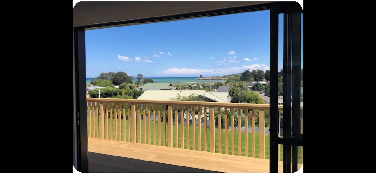 Nestled amongst the native trees, up on sunny South hill , hides a mid-century gem. Elevated over the garden with a deck that completes the house giving prime views of the ocean and sunrise. 2 minutes down the hill to the historic precinct filled with many delights including Blue Penguins ,bakery, coffee, art galleries and breweries.The East Coast golden sand beaches are a short ten minute drive away.