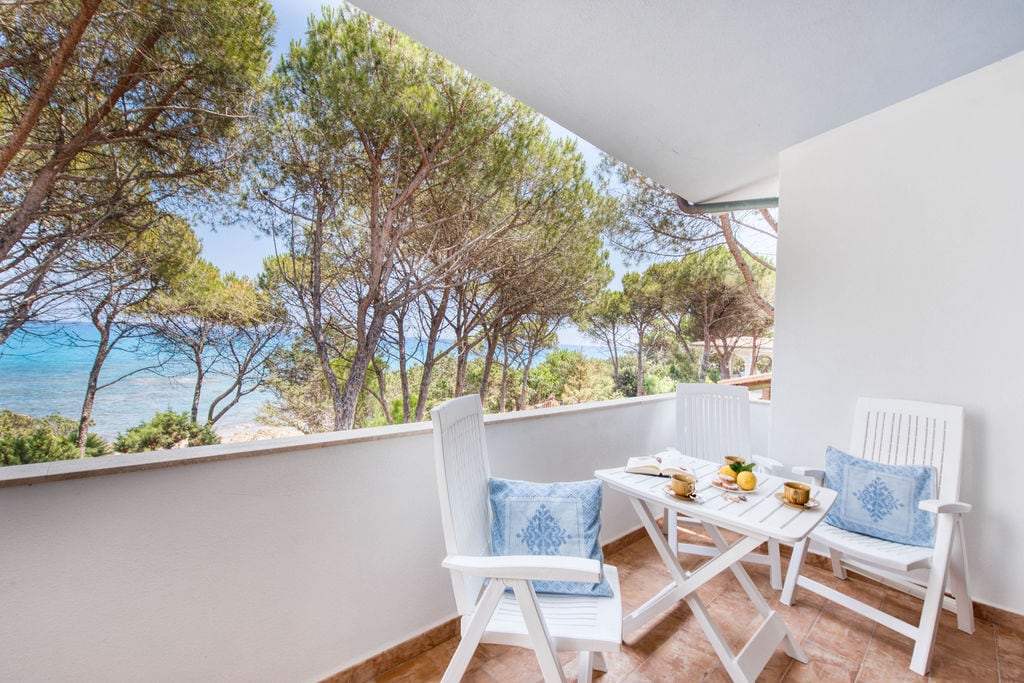 Appartamento al pian terreno con accesso diretto sulla bellissima spiaggia di cala Ginepro, a 20 m. dalla battigia, composto da tre camere da letto, cucina fornita di tutto il necessario, bagno, aria condizionata, lavatrice, internet Wifi, zanzariere in tutte le finestre, giardino privato, tre verande arredate, garage/ripostiglio, barbecue, parcheggio privato e doccia esterna