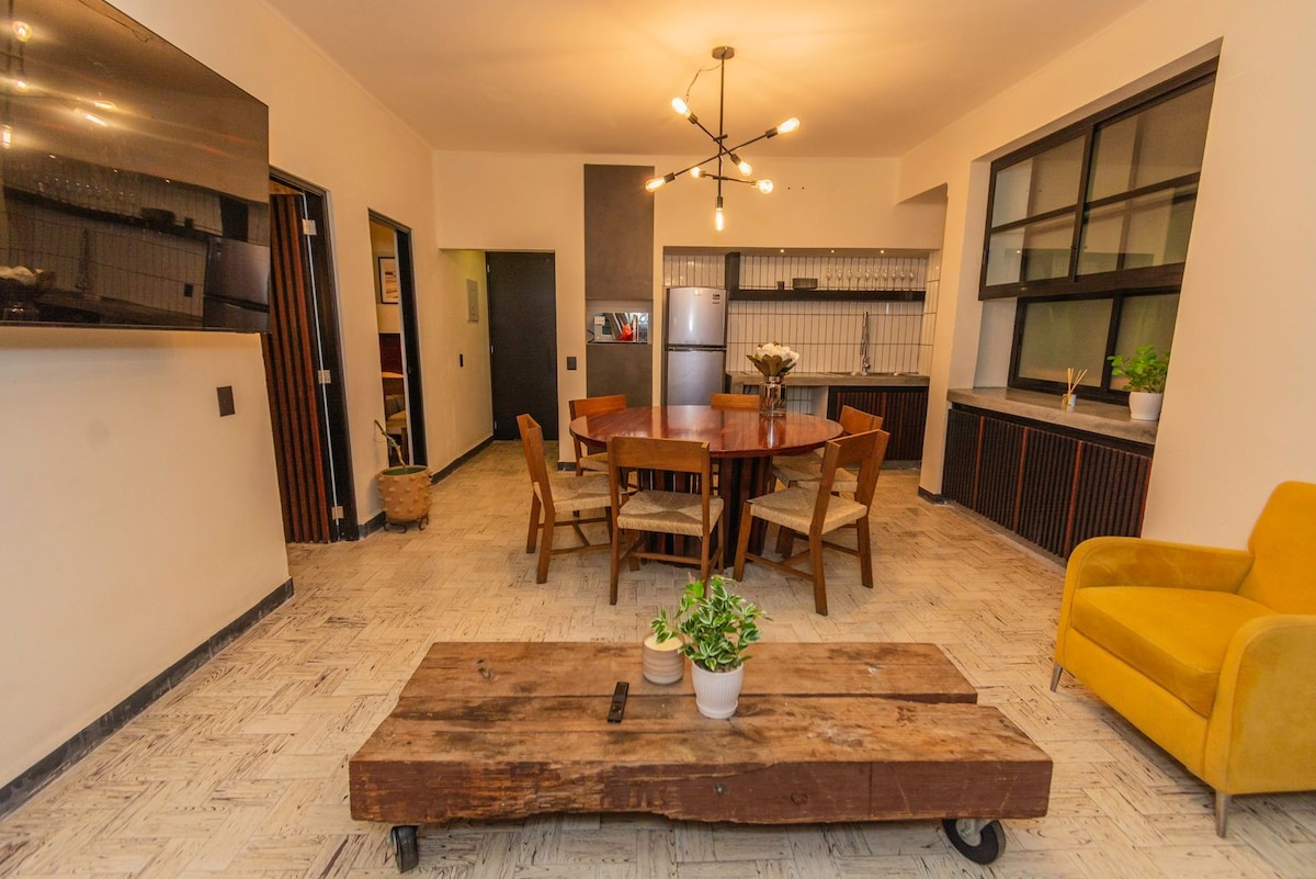 Espacioso y cómodo departamento-loft con diseño oaxaqueño contemporáneo. El apartamento está ubicado a sólo 3 cuadras de la plaza principal llamada Zócalo y 3 cuadras del templo de Santo Domingo de Guzman. A pasos de famosos restaurant multi premiados, galerías de arte, cafés y el bello andador turístico de la ciudad. Desde aquí podrás llegar andando fácilmente a todos los atractivos turísticos que la ciudad te ofrece.
