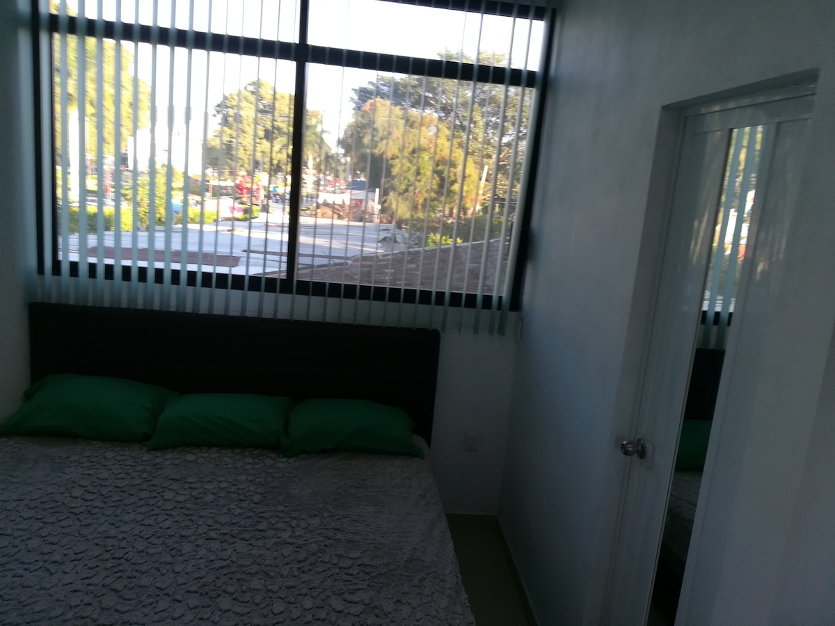 Departamento amplio, encantador e independiente, tiene ducha con sujeciones para personas con movilidad reducida. Tiene cocina, comedor, una sala amplia con Smart-TV. Tiene 2 recámaras; una con cama matrimonial y otra con 2 camas, una cama queen y otra matrimonial, los colchones son muy cómodos. Hay espacio para colgar tu ropa, lámparas en las mesillas de noche. Internet 200 Mbps Hay parking, se paga adicional, leer condiciones. Si necesitas lavar tu ropa, hay lavanderías muy cercanas.