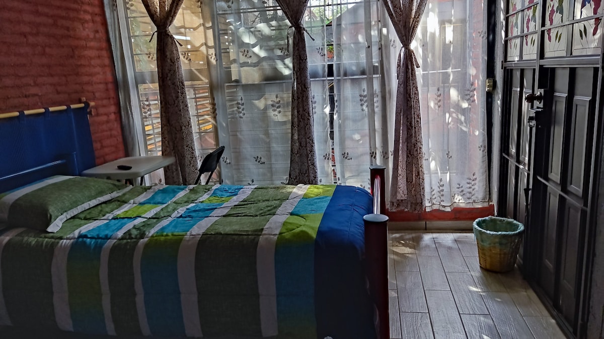 The property is located in Jalatlaco, one of the safest and most calm neighborhoods in Oaxaca. The bungalow has its own bathroom, a queen size bed, ceiling fan and air conditioning as well as a small kitchenete. The room is separate of the main house by the patio and garden. I live in the main house with my daughter and my two dogs . In the property I also have other small room for rent, this is just for one person and it is located in the same patio area.
