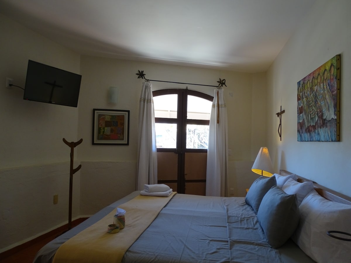 Despierta cada amanecer en una confortable habitación independiente en terraza con extraordinarias vistas a la ciudad donde puedes realizar actividades al aire libre y contemplar el colorido cielo de Oaxaca al amanecer y al atardecer. Ubicada en uno de los barrios más emblemáticos de la ciudad de Oaxaca, cercano a comercios locales y caminando a 5 minutos del Centro Histórico. ADEMÁS! Si te hospedas 3 noches o más, la primer mañana prepararé para ti un delicioso desayuno, como cortesía.