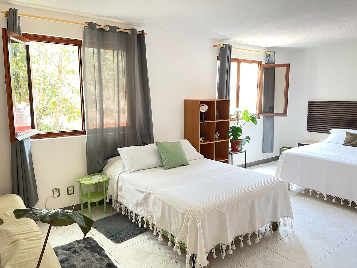 Our house is a comfortable and spacious space located a 5-minute walk from the main square of Oaxaca City and two blocks away from the Ethnobotanical Garden and the downtown area. Here, you can share beautiful moments in this accommodation with warm colors and small details that make you feel at home. Shops, cafes, and restaurants are just steps away. Additionally, it is located in the safest area of the city.