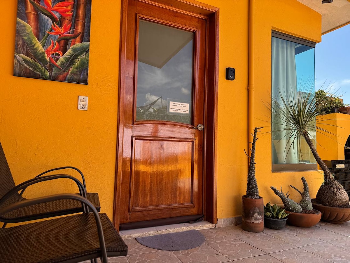Este es un departamento moderno, privado con una ubicación perfecta—a 15 minutos del centro caminando y 5 en taxi. Es un loft abierto y luminoso en el tercer piso equipado con sala, cocina, recamara y baño completo. Comparte su acceso con un café en la planta baja, pero la entrada es completamente independiente. Este lugar es perfecto para huéspedes independientes y también para los que gustan de un toque de hospitalidad.
