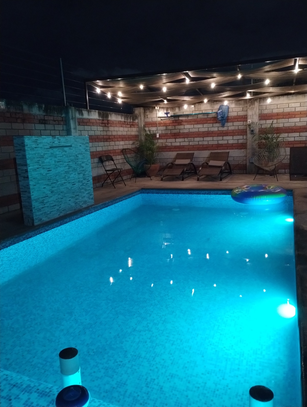 El acceso, la cochera y patio trasero se comparten con la casa principal. En el patio se encuentra una mesa de jardín. En la planta baja del alojamiento se encuentra una cocineta con utensilios, una recamara con una litera de cama matrimonial abajo e individual arriba y una cama individual, medio baño y ducha separados. En planta alta una recamara con baño completo y terraza, para accesar hay que subir escaleras externas.