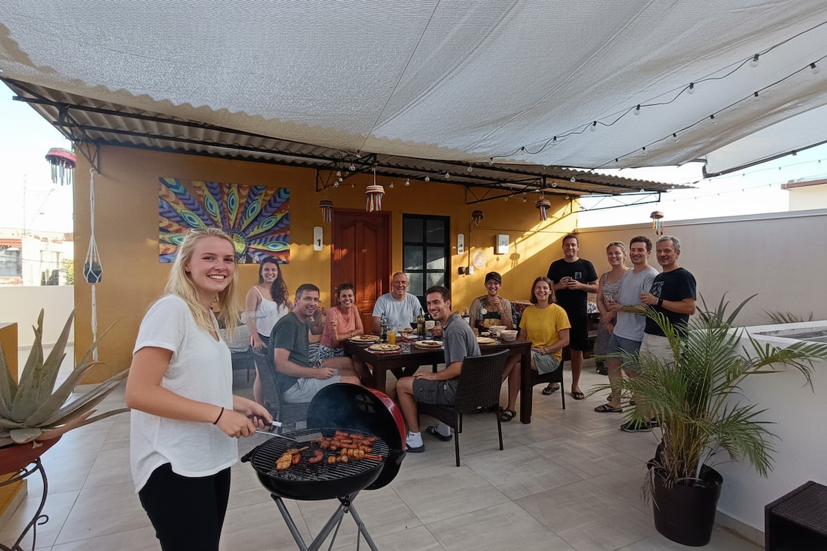 Terraza en Centro — alojamiento entero para 9 huéspedes: 3 recámaras, 4 camas (3 matr + 1 king) y 2 baños (uso exclusivo). 10 min a Santo Domingo y ½ cuadra del Mercado Sánchez Pascuas. Cocina, terraza con asador, wifi [275] Mbps y estacionamiento (1 cajón interior). Ubicación “walkable”: comida, mercados y cultura a pie. ¡Vive una auténtica experiencia oaxaqueña, llena de confort y cercanía a la magia del centro histórico!
