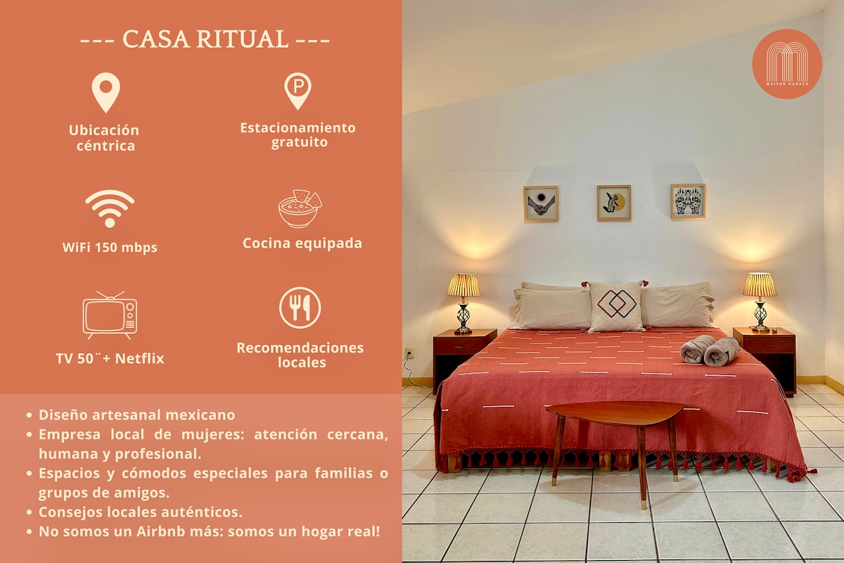Delight yourself in this peaceful and minimalist home perfectly located in one of the most emblematic neighborhoods of Oaxaca City! just 10 minutes walking to the historical center. Featuring beautiful wood details in every corner, quarry finishes and a beautiful spiral staircase, this home has abundant light and a beautiful & calm energy. Enjoy a cup of tea in the japanese style living room while planning your next adventure in this magical city! Sorry any pet is allowed in this property.