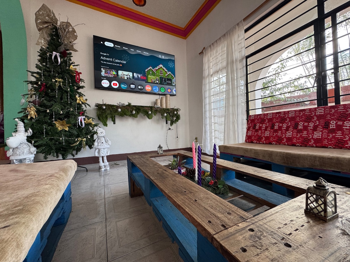 Big House in Jalatlaco features 4 bedrooms, 3 bathrooms with ceiling fans, one bedroom on the main floor in suite, 3 bedrooms in the second floor, 1 in suite and 2 bedrooms sharing bathroom. The full house has a water softener. Amazing covered rooftop terraza with views all over the valley and the Auditorio Guelaguetza. 100 mbps wifi through out the property. Our new LED fireplace on the terrazza overlooking the city. Our villa is big, has many spaces for friends and family.