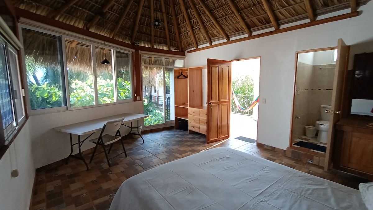 Super nice second-floor apartment under a cool palapa roof with a king-size bed, hot water bathroom and a cozy terrace with a hammock and a rustic open-air kitchen fully equipped (induction stove, fridge, coffee maker, blender, etc.). Super cozy and comfortable, right in the heart of Puerto Escondido.🌴 High-speed fiber optic Wi-Fi (minimum 20 Mbps) from Telmex and Starlink. Perfect for remote work!🛜 At El Jardín, we have 14 accommodations on Airbnb if you're interested in other options.