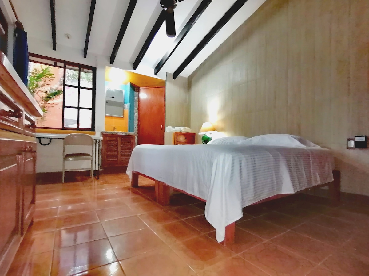 Es un hermoso y apacible loft con decoración alegre y mexicana , dentro de un espacioso jardín con hamacas, árboles frutales y florales, además de su muy amplia terraza y alberca con recubrimiento de chukum cuya agua el calentada por medio de calefactores solares .
