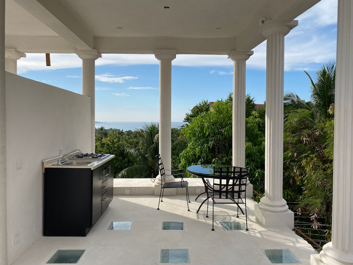 The personal residence of a well-known international artist in central Puerto Escondido, located on the hills facing the Pacific Ocean and inspired by a Greco-Roman villa, has become a luxury boutique hotel with only five apartments, all with views reaching La Punta and close to everything. Guests can use a music room with a grand piano, a large pool, and a hammam. This suite also has an additional private small pool. An uncommon experience for people looking for something more.
