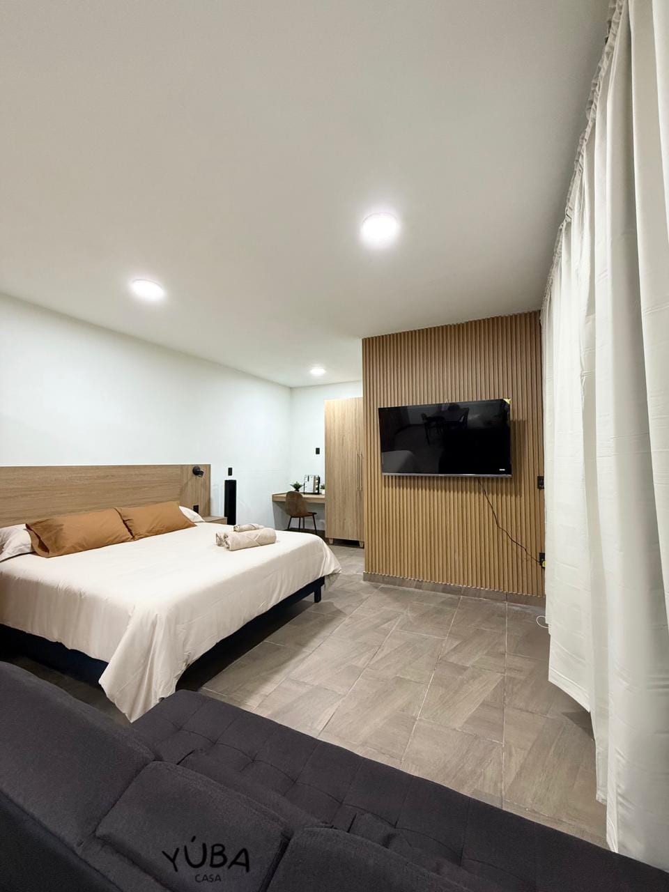 Experience the charm of MARGARITA, a private 34 m2 flat in our boutique apartment complex. This suite offers a bedroom, bathroom, and a dining room with a kitchen. Enjoy entertainment with two 43-inch 4K TV screens and stay connected with Wi-Fi. Admire the view from two large windows overlooking a lively plaza. Located in Oaxaca's city centre, MARGARITA is within walking distance of the zocalo, andador turístico, and other attractions.