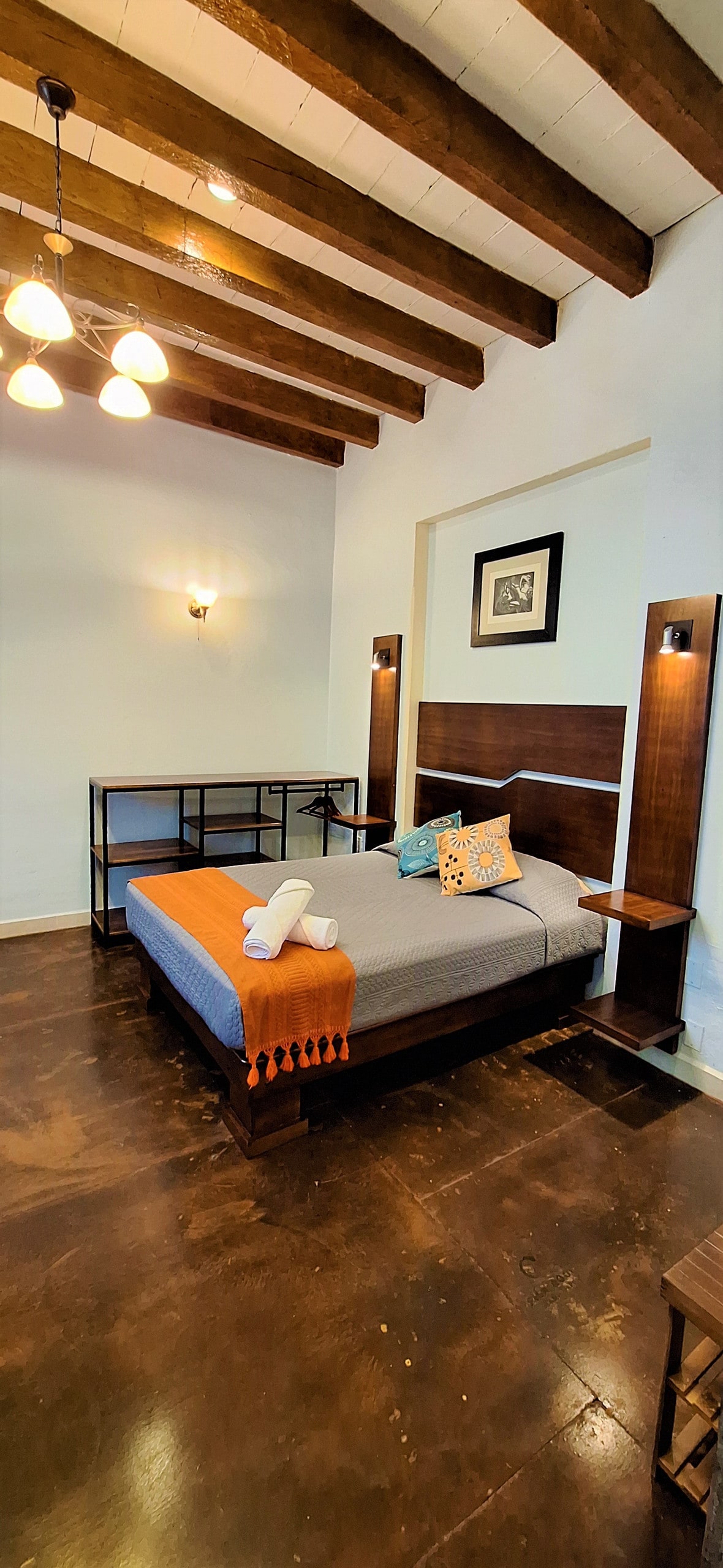 Discover SOLEDAD, a spacious 56 m2 private flat with a terrace, located in our boutique apartment complex. This two-bedroom suite features two private bathrooms, a dining room with a sofa, and a well-equipped kitchen. The highlight of SOLEDAD is its immense terrace, offering stunning views of the city and mountains. Situated on the second floor, it includes three 43-inch 4K TV screens and Wi-Fi. Located in Oaxaca's city centre, it is within walking distance of many attractions.