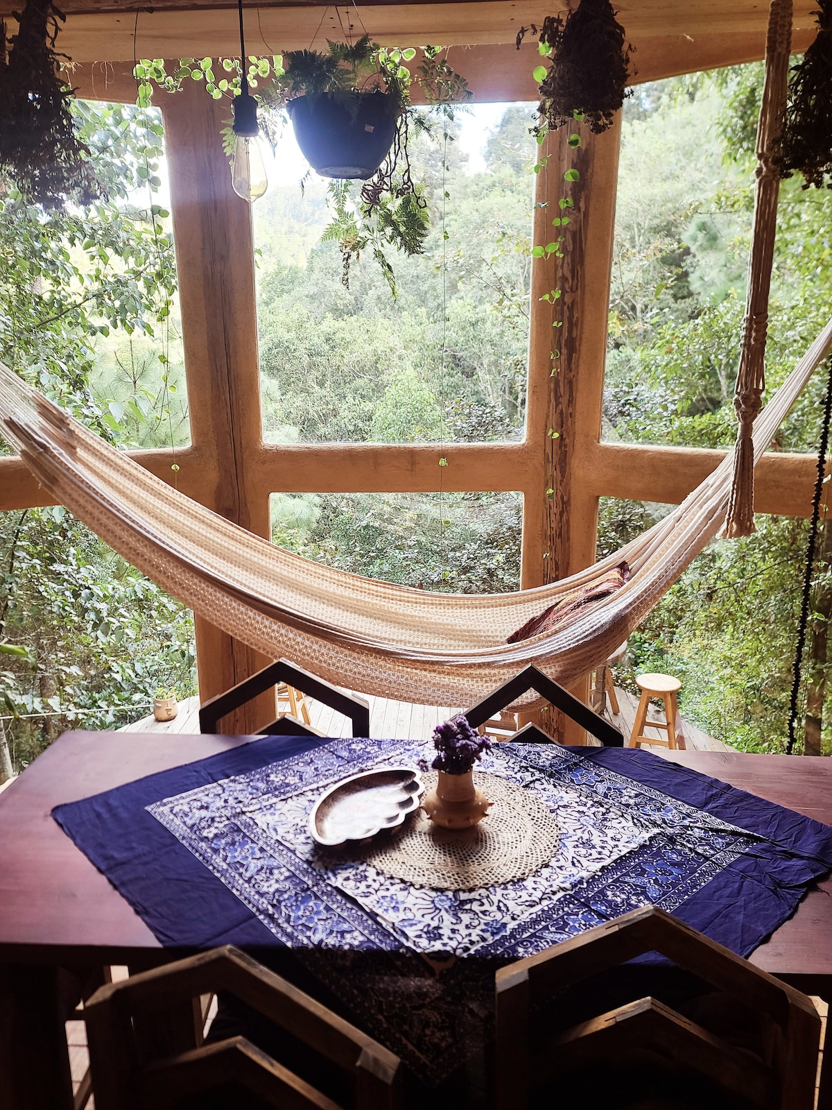 Welcome to Casa Chuparrosas, a spacious and elegantly designed cabin in the mountains of Oaxaca. Situated 5 minutes walking distance to San Mateo Río Hondo's center, our cabin sports one of the best views in town. In the morning, the sun peaks through floor to ceiling glass panes, slowly lighting up the mountain range across the valley. In the evenings, you're welcomed home by a warm fire, bamboo sheets, handwoven wool blankets, a luxurious mattress and a Starlink connection.