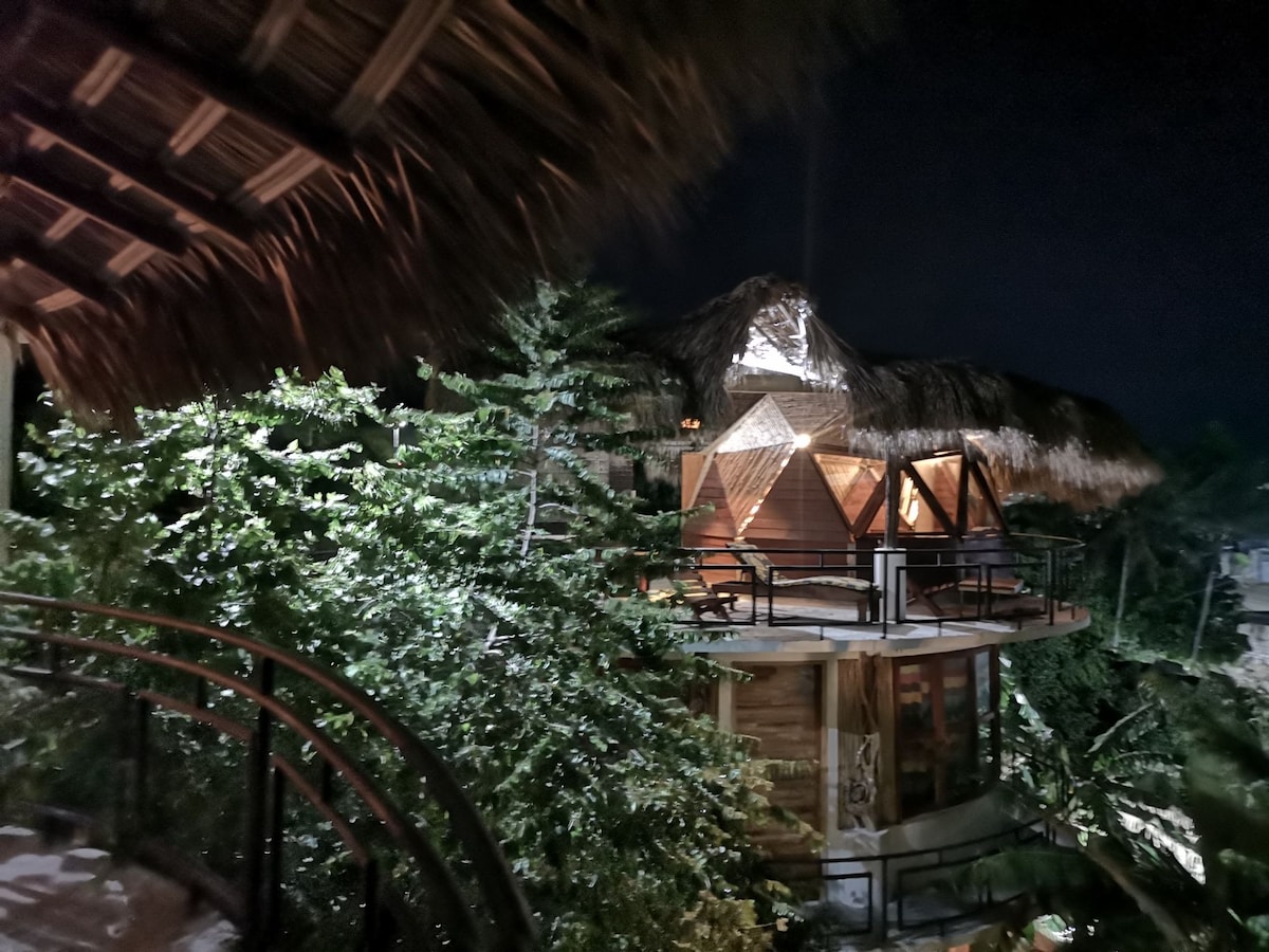 Disfruta de una experiencia glamping totalmente diferente!!. Es el único alojamiento de su tipo en Zipolite, este domo geodesico está perfectamente ubicado y tiene una vista maravillosa hacia el mar, a 200 mts está la disco bar Zanate y el horario de la música es hasta las 4 am, si te gusta la fiesta está muy cerca, este es el sitio perfecto para ti si te gusta el buen ambiente y el calorcito. aún lado del espacio está una construcción que puede causar algo de ruido.