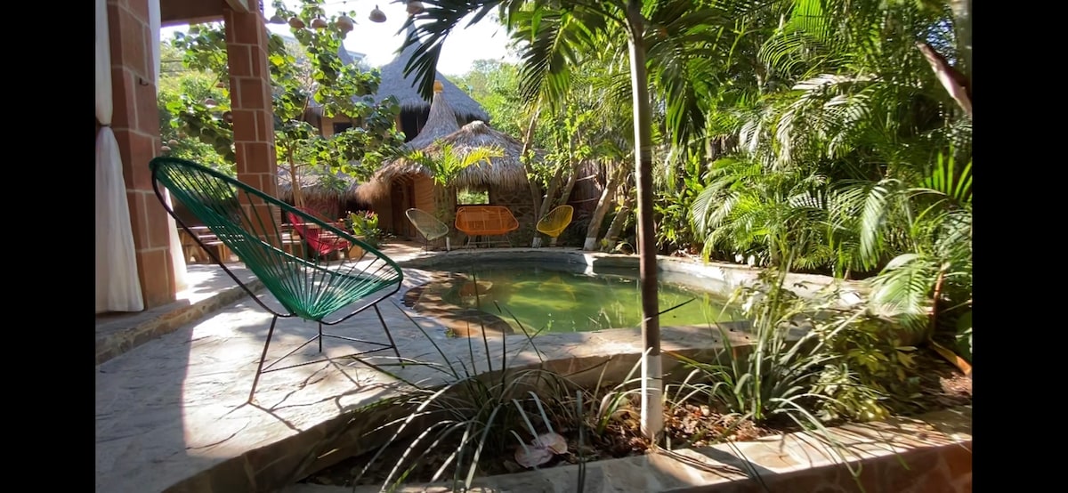 Very close to the beach, ocean views, 15 minute walk to Mazunte and 12 to the Yoga School, common areas, decent wifi and a lot of peace and calm. Showers, toilets and Kitchen are shared. We have parking for cars and motorcycles with an extra charge.