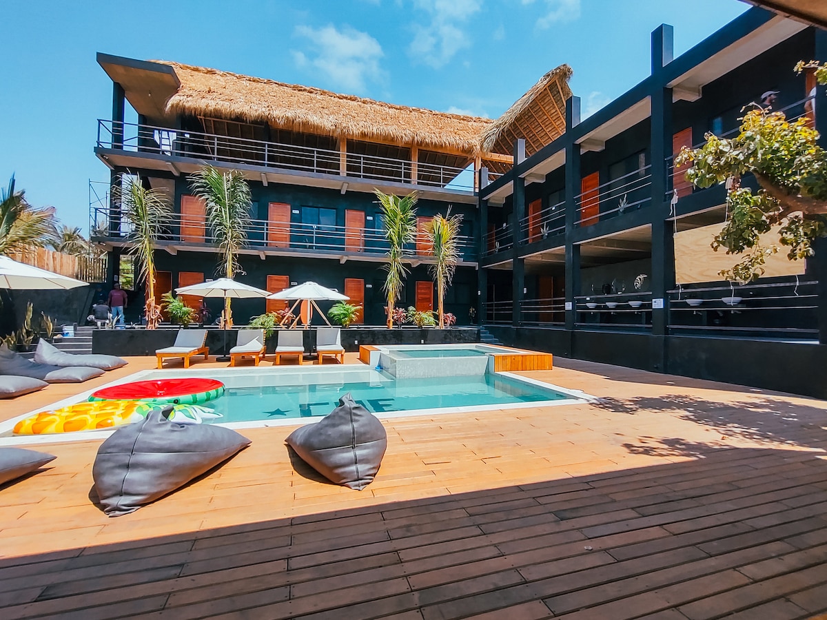 Indulge in the ultimate seaside escape at our private room in the heart of Zipolite's nudist beach. Experience unrivaled comfort, breathtaking sunsets, and direct access to Che Zipolite Naked Hostel & Beach Club. Immerse yourself in the rhythm of the waves, savor delectable cuisine, and sip on cocktails in a setting that's nothing short of paradise. Your ticket to unique sunsets, music, and seaside bliss awaits!