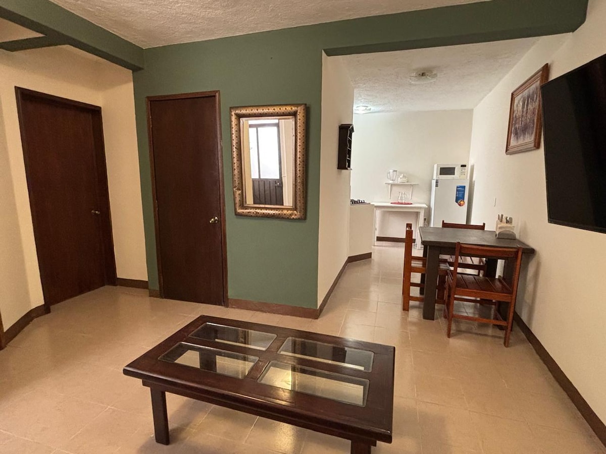 Este es un departamento moderno, privado con una ubicación perfecta—a 15 minutos del centro caminando y 5 en taxi. Es un loft abierto y luminoso en el tercer piso equipado con sala, cocina, recamara y baño completo. Comparte su acceso con un café en la planta baja, pero la entrada es completamente independiente. Este lugar es perfecto para huéspedes independientes y también para los que gustan de un toque de hospitalidad.