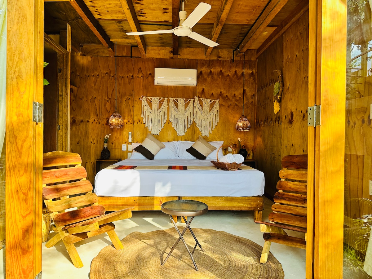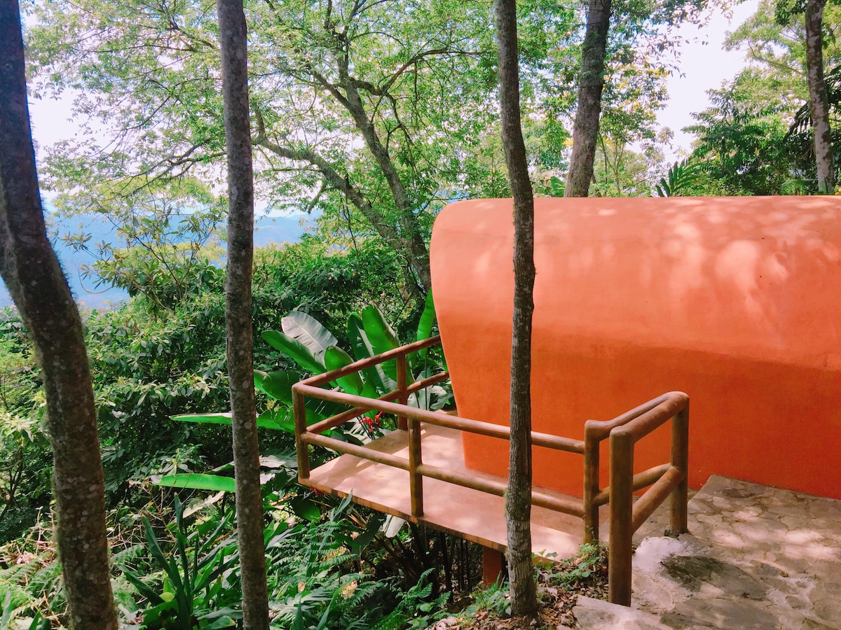 Experience a Deep Connection with Nature in this Awe-inspiring Cabin with Breathtaking Views set on a cliff in YIIMTII Ecological Reserve: 90 acres of Tropical Forest with access to two protected Pristine Beaches, Panoramic Hiking Trails, Organic Fruit Orchard and Permacutural Gardens. Luxurious rustic accomodation. Healthy Gourmet and Organic Food Service available (not included in price). Very exclusive and private, one of only two Cabins in the EcoReserve. Ideally perfect for honeymooners