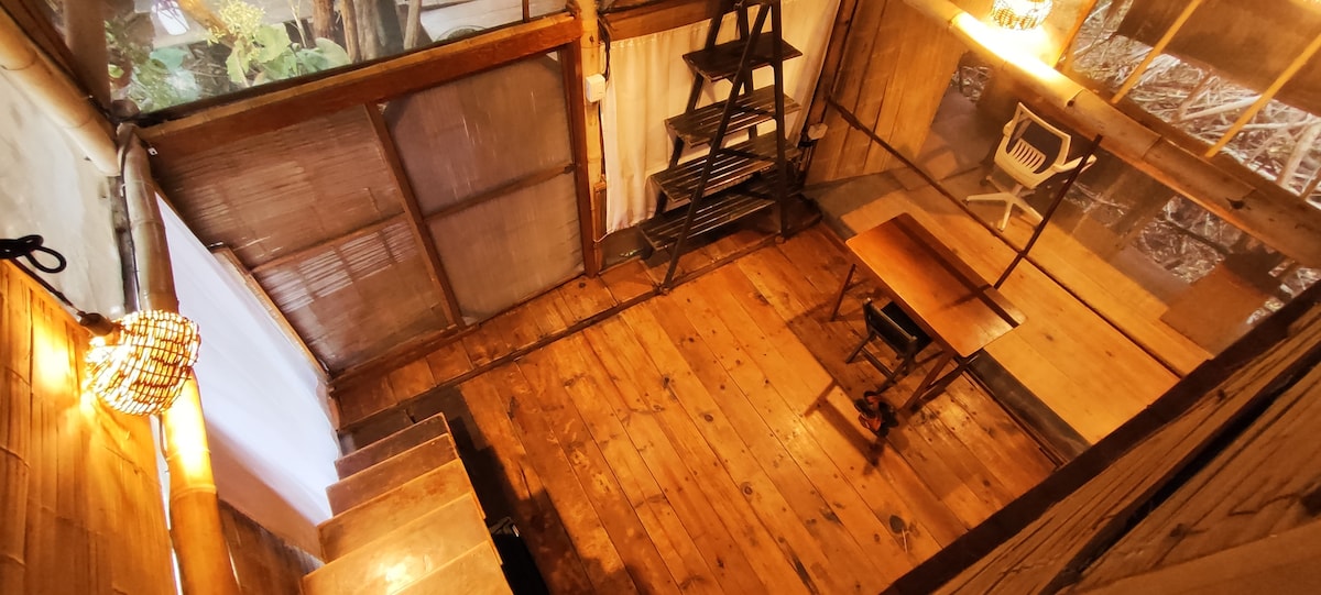 OSA is a two floors cabin very switable for 4 Persons, Corazon Mazunte offers a unique experience in the heart of Mazunte 300 meters from the beach in a little mangrove. We are a natural wild life conservation project. This bamboo cabin has a working area with high speed internet (150+ Mbps) a small fridge inside, a private deck(patio) behind with a view of the mangrove and shared kitchen, there is a king bed below and a double bed in a second open floor (tapanco)
