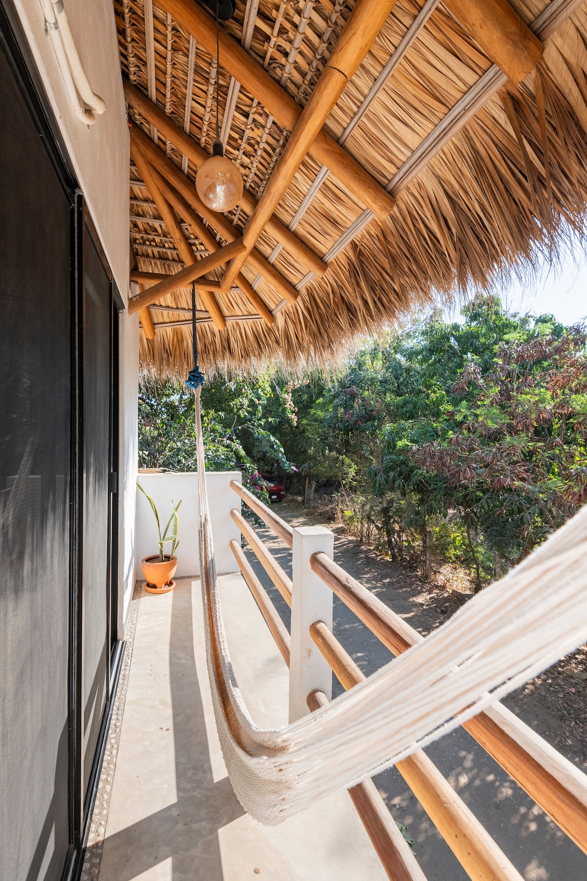 Welcome to Casa Shanti! This luxury Apartment has everything you need! Star link internet - Most reliable in Town. Fully equipped kitchen with: Blender, coffee maker, big fridge, great Gas burners. Plus- A small private terrace with your own hammock 24/7 Cozy and practical bathroom With hot water and great water pressure. Exotic wood design everywhere + AC OUR location: walk 1 minute to the beach. OR join our movement and Yoga classes! BOOK NOW Note: possible construction work nearby