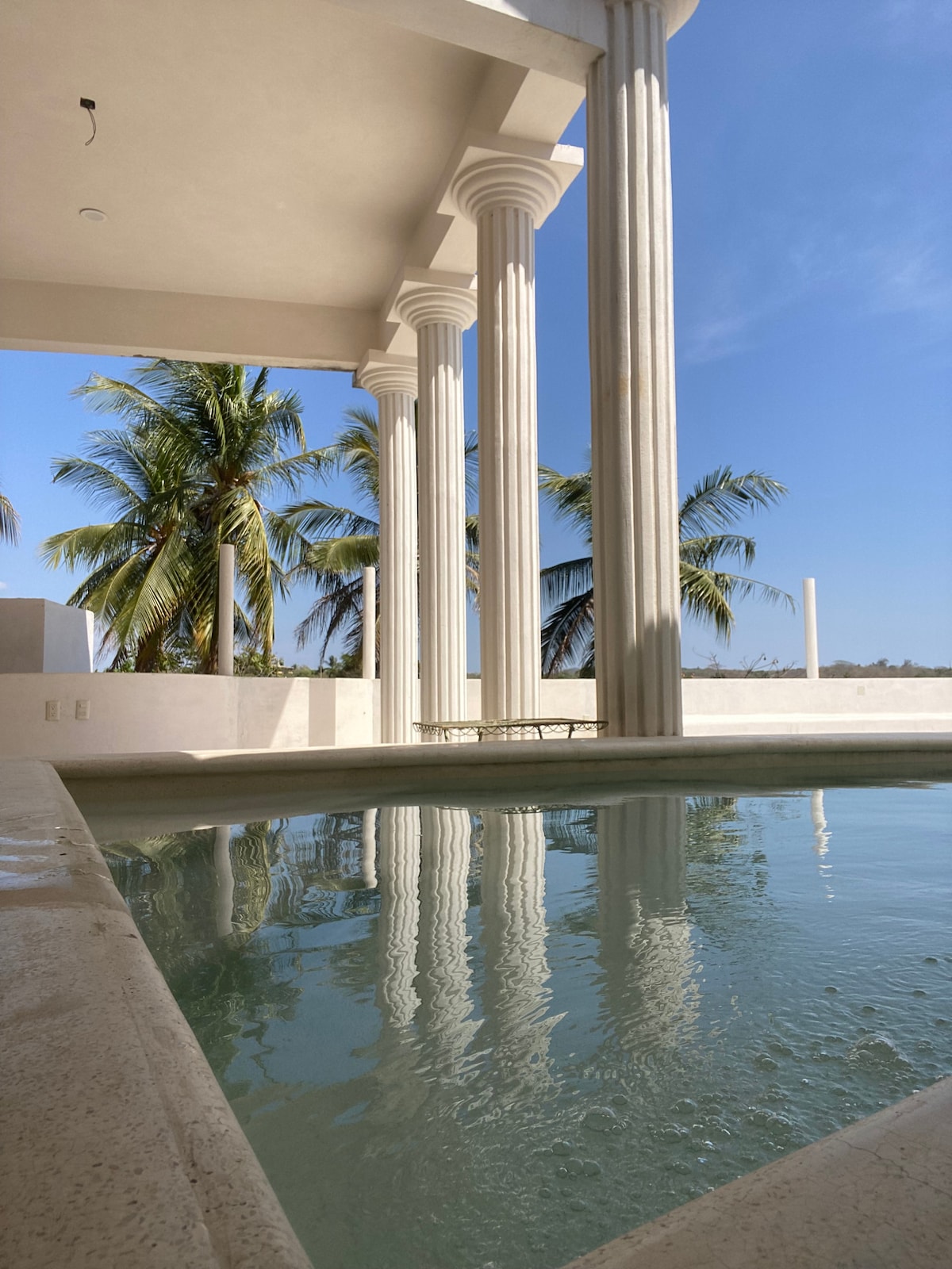 The personal residence of a well-known international artist in central Puerto Escondido, located on the hills facing the Pacific Ocean and inspired by a Greco-Roman villa, has become a luxury boutique hotel with only five apartments, all with views reaching La Punta and close to everything. Guests can use a music room with a grand piano, a large pool, and a hammam (Turkish Bath). This suite also has an additional private small pool. An uncommon experience for people looking for something more.