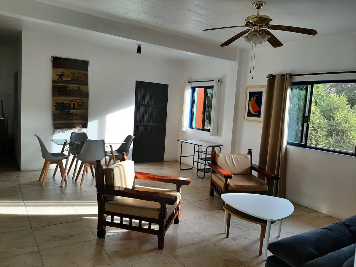 El departamento está totalmente equipado para disfrutar gratamente una estancia desde 4 días hasta 4 semanas o más en un ambiente privado. Está ubicado en una de las zonas más tranquilas y seguras de Oaxaca dónde encontrarás tiendas de autoservicio, restaurantes, cafés y un bello mercado. Podrás llegar fácilmente al centro de la ciudad a pie o en transporte.