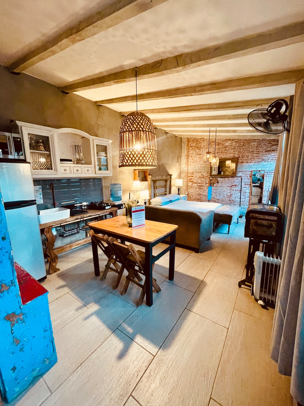 Es un departamento muy amplio, con una estancia con sofá cama, comedor y cocineta con frigobar y parrilla de inducción. La recámara principal tiene un closet con vestidor y un amplio baño. La suite tiene una preciosa terraza para disfrutar el desayuno y las agradables tardes en Oaxaca. Tiene wifi. Cada entrada y salida de huéspedes hacemos una limpieza profunda y sanitizacion.