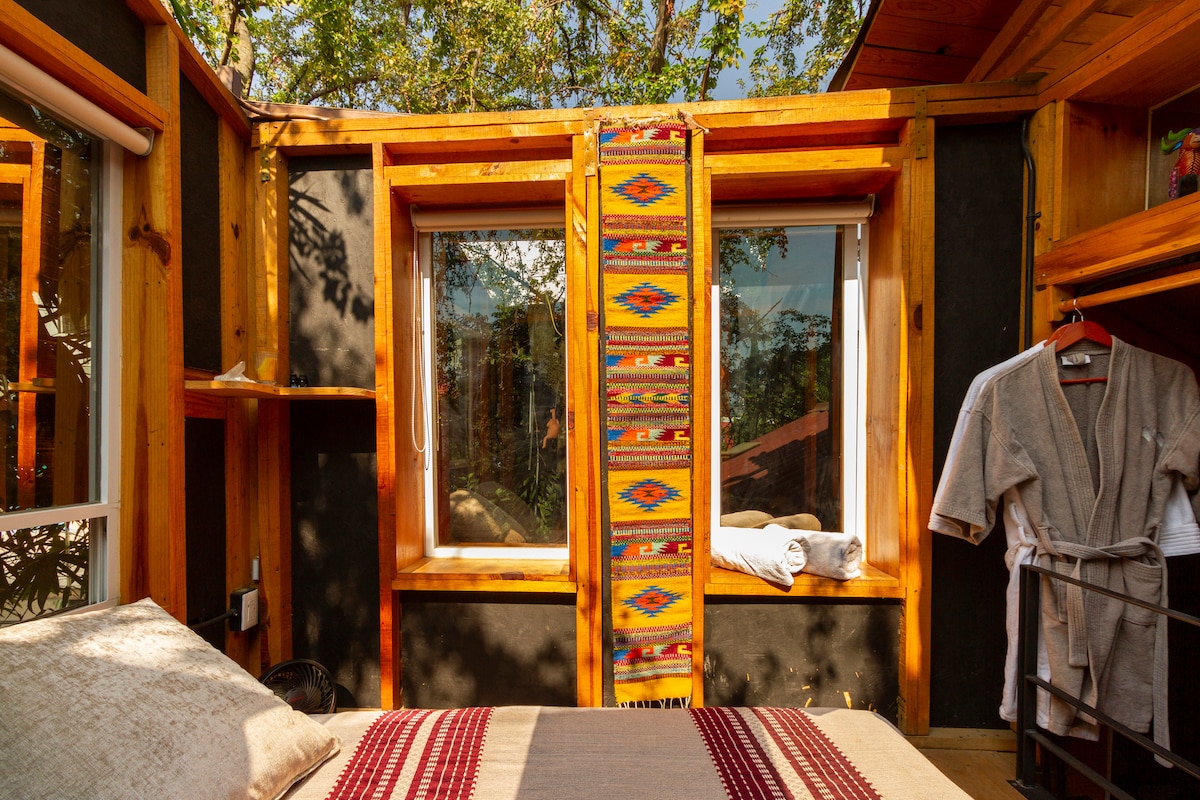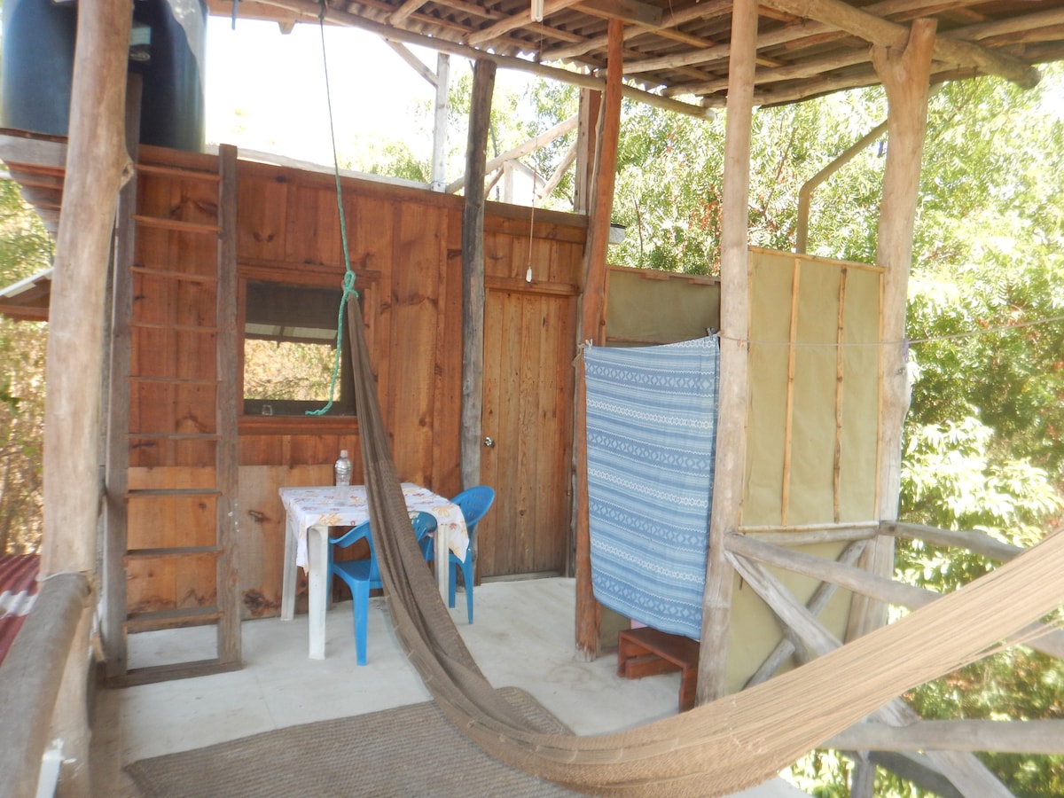 Cozy tree house, perfect for couples. A unique experience, just 15 minutes from the City. 100% wooden house with big space, soft and very clean sheets and mattresses. The roff of the room its sliding, you can enjoy a night watching the stars lying on the bed. The bathroom is outside of the treehouse, hot water with solar heater. The Tree House is located on a fully enclosed property with a large garden. welcome pets Remember its a tree house, rustic