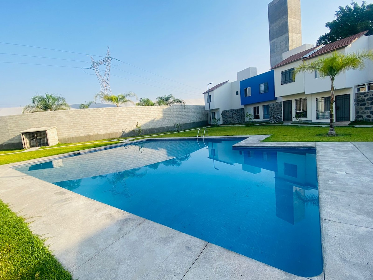 Ven y disfruta con tus seres queridos en este alojamiento ideal para tu familia. Además de alberca, contamos con un atractivo turístico a escasos 30 metros del fraccionamiento , es un nacimiento "ojo de agua" donde podrás nadar y estar en contacto con la naturaleza. Cerca del lugar se encuentran tiendas comerciales, hospital del niño morelense, central de abastos y gastronomía. Contamos con internet, NETFLIX, PRIME VIDEO Y VIX