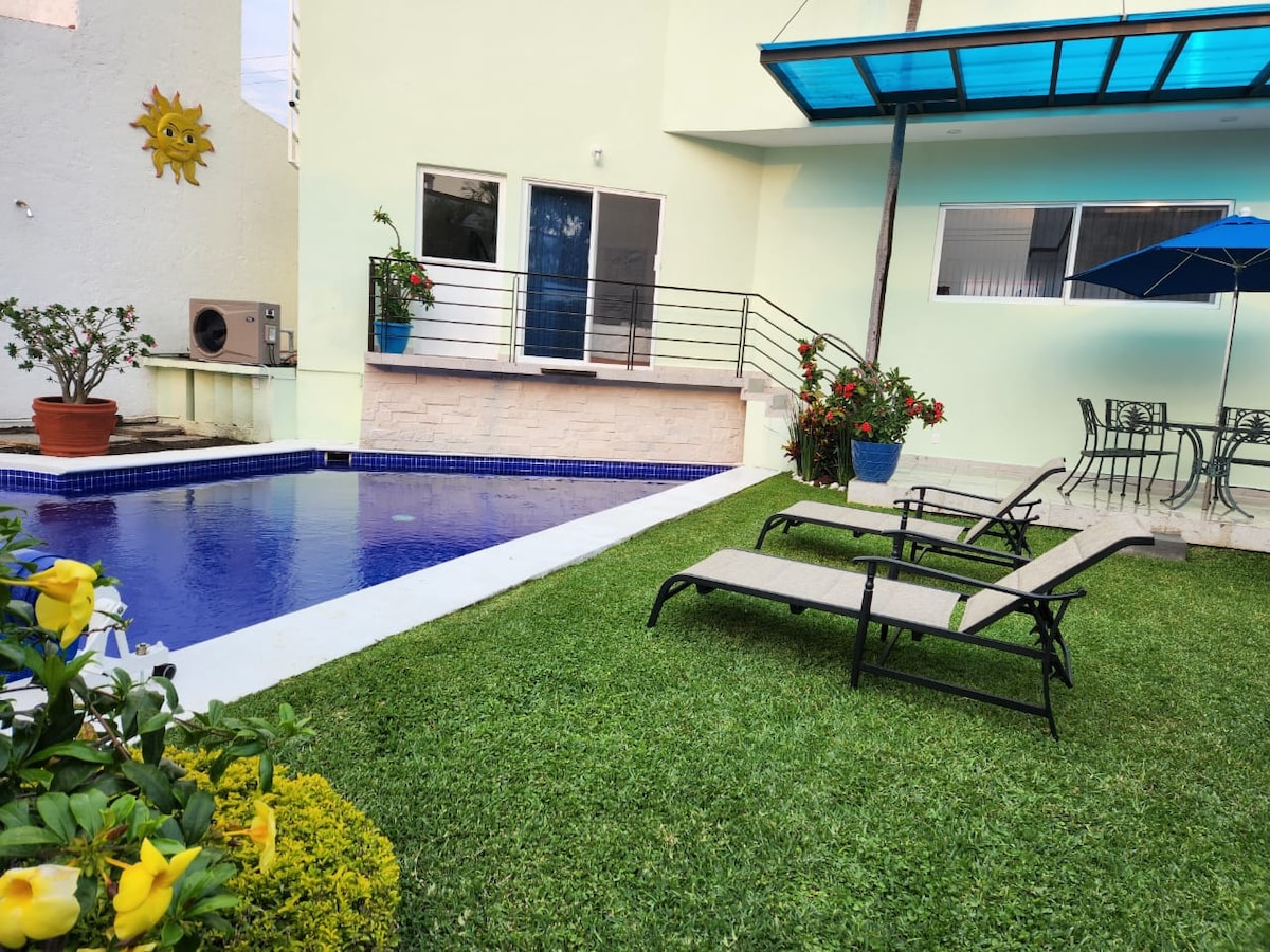 Liberate del estres de la ciudad y disfruta de un fin de semana en familia o con amigos, en una zona exclusiva. La casa es nueva y cuenta con dos jardines, alberca privada climatizada con paneles solares que la mantienen a temperatura ambiente, recámara principal con cama queen size, habitación secundaria con dos camas matrimoniales, aire acondicionado en las recamaras y sala comedor estacionamiento privado y seguridad 24 hrs. Al final de la estadía, nosotros nos hacemos cargo de la limpieza.