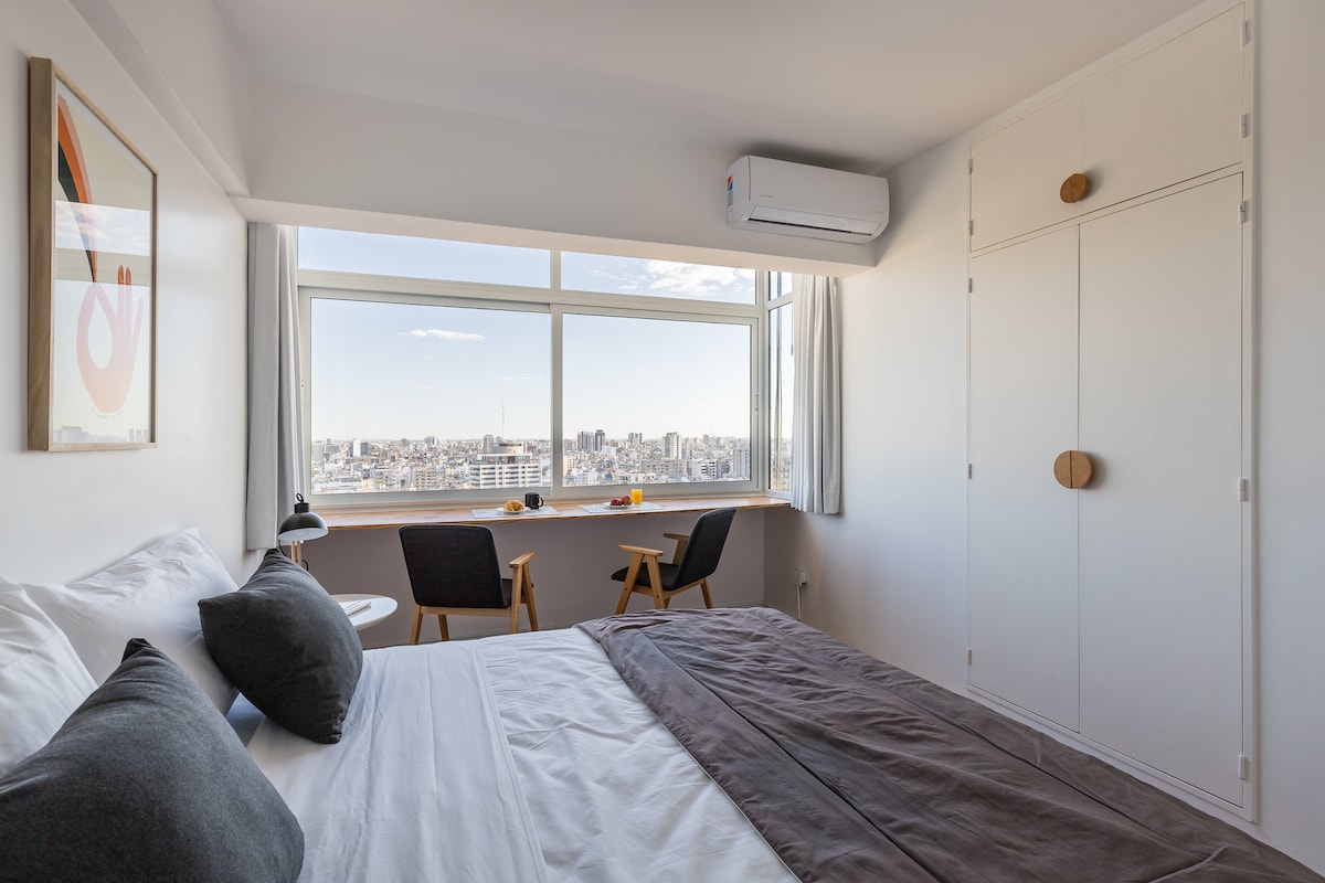 Enjoy the architecture of one of the most visited and well-located neighborhoods in Buenos Aires. Walk to iconic spots like Recoleta Cemetery, El Ateneo bookstore, Colón Theater, the Obelisk, or Plaza San Martín. Easy access by public transportation to other areas (Palermo, Plaza de Mayo, San Telmo, Chinatown). Relax at the end of the day in this porteño apartment with a japandi touch.