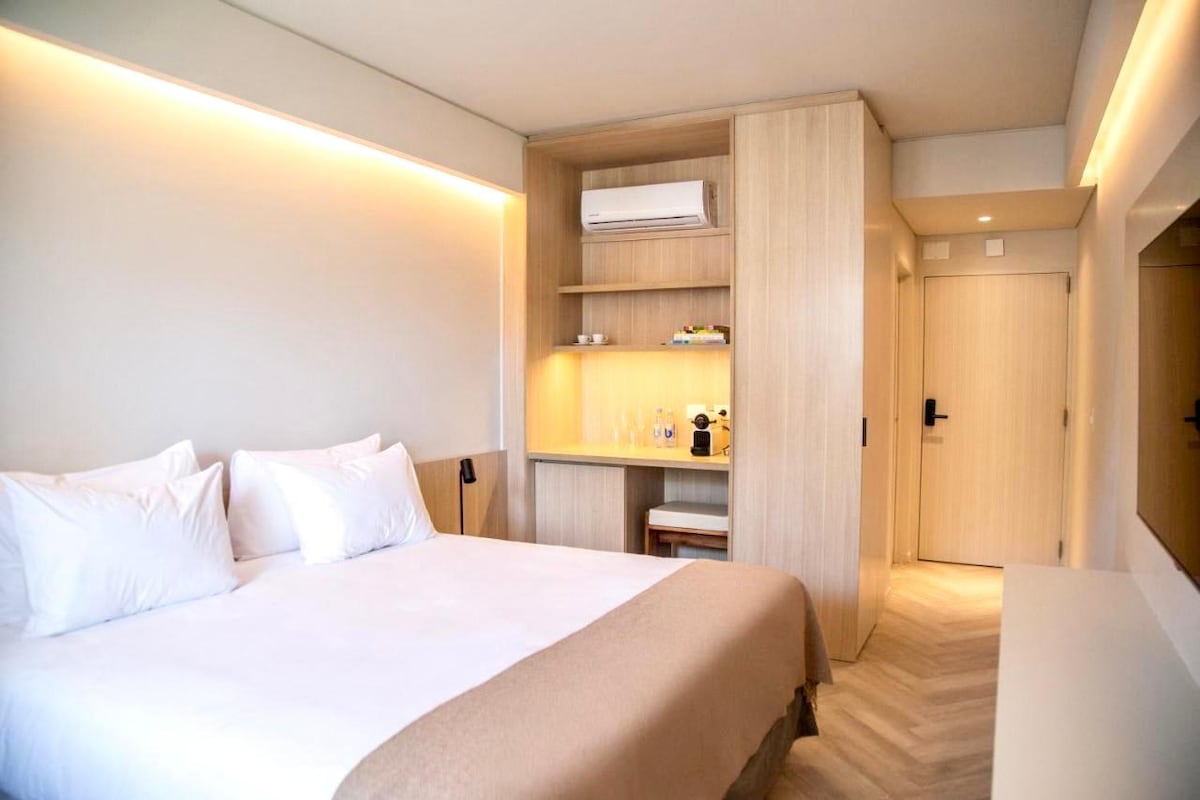 Bright and modern apartment at Hotel Ker San Telmo, located at Av. Colón 455. It features two twin beds, a desk, TV, air conditioning, safe, minibar, and electric kettle. The bathroom includes a bathtub, double sink, and premium amenities. Ideal for comfortable and functional stays in a central area, close to Puerto Madero, San Telmo, and Buenos Aires’ main attractions. Spacious and comfortable space. The hotel offers access to the spa, with sauna and massage services (additional cost).