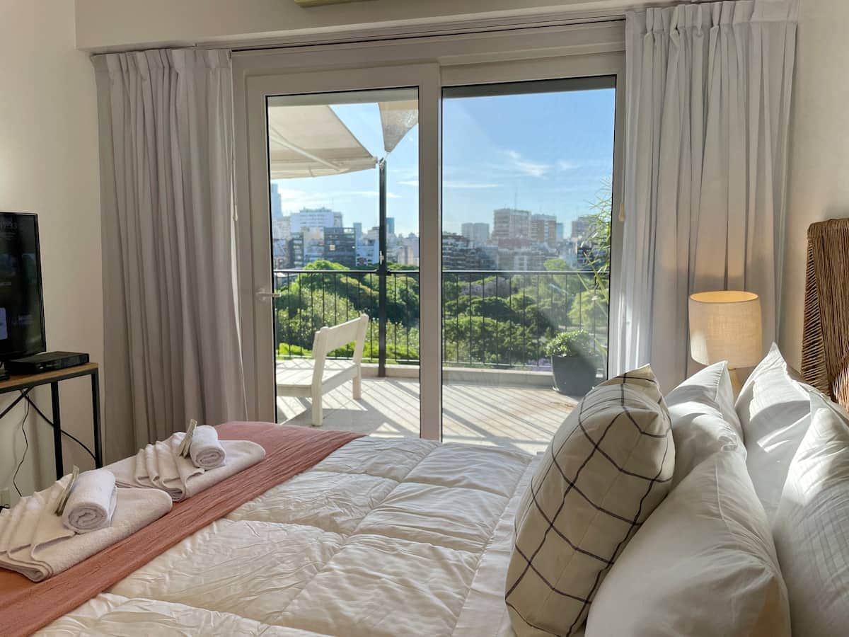 Espectacular departamento, amplio y luminoso con terraza, piscina y parrilla privados. Totalmente equipado y decorado para que la estadia sea lo más placentera posible. El alojamiento se encuentra en el último piso de un edificio moderno ubicado en Palermo Soho, una de las zonas más seguras y con gran atractivo gastronómico y cultural. Ideal para parejas que buscan tranquilidad, un descanso confortable y disfrutar de una increíble terraza con una vista preciosa.