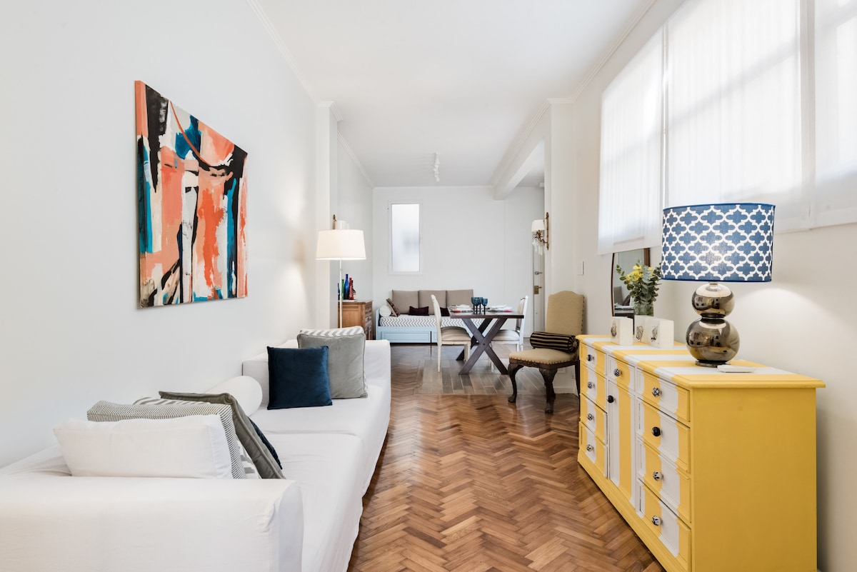 Elegant and fully equipped 100 m² apartment located in the very heart of Recoleta. Thoughtfully designed with two comfortable bedrooms, a spacious living and dining area, one full bathroom and a guest toilet. Quiet garden views, excellent building, an unbeatable location just steps from Recoleta’s best cafés, parks, museums and public transportation make this apartment a refined and comfortable choice for your stay in Buenos Aires