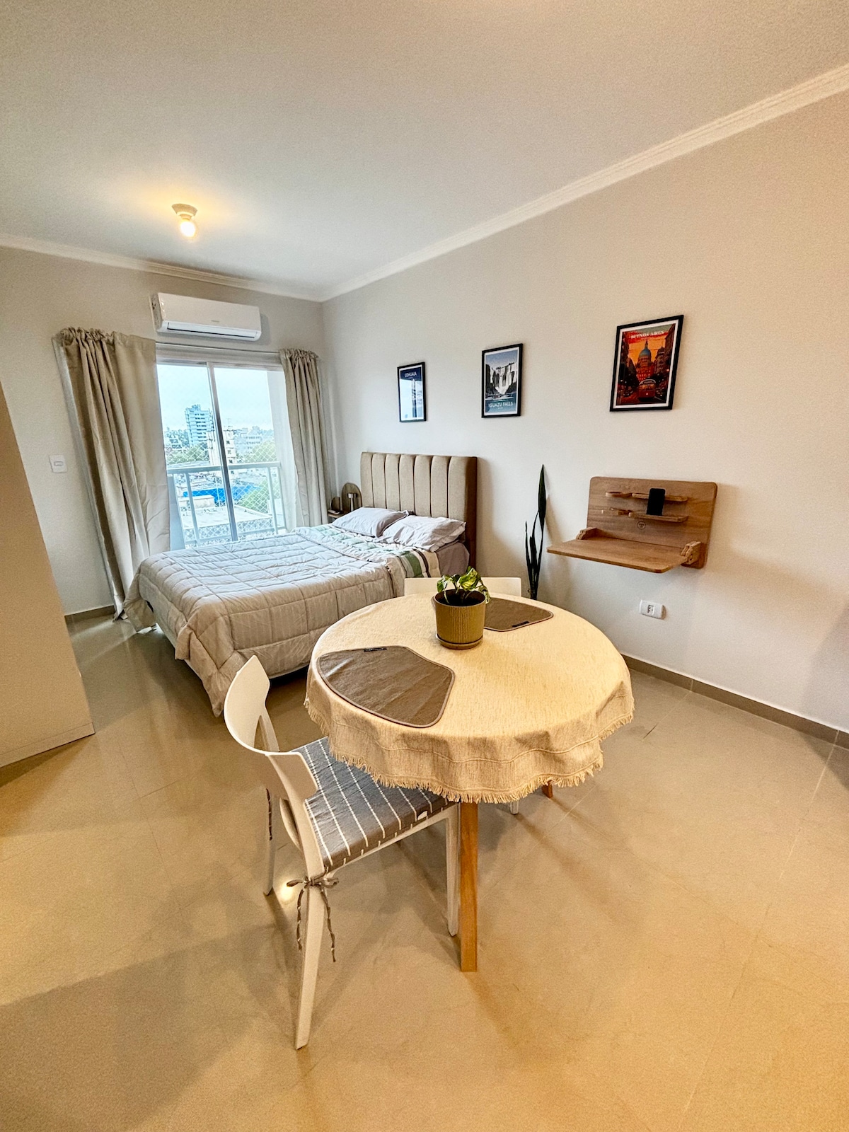It is a luminous interior studio apartment of 28 m2, located in a new building and in one of the most central areas of the city, ideal for getting to know Buenos Aires on foot. It has a 43" smart TV, high-speed internet , a double bed ( of high quality) or 2 separate ones (0.80cm wide, 1.90m long) at the guest's choice, hot/cold air conditioning, safe, spacious, and modern bathroom. The building has solarium, gym and laundry.
