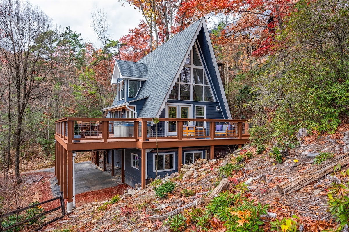 Experience the charm of the Smokies by staying in this romantic and rustic two-level chalet nestled in the mesmerizing mountain setting of Gatlinburg, TN. Great Smoky Mountains National Park, Pigeon Forge & Ober Gatlinburg Ski Park are all nearby and will leave you in awe with their rich natural treasures. ✔ 2 Comfy Bedrooms ✔ Open Design Living ✔ Fully Equipped Kitchen ✔ Decks (Seating, Hot Tub) ✔ Backyard (Fire Pit, BBQ Grill) ✔ Smart Tvs ✔ Location ✔ Privacy See more below!