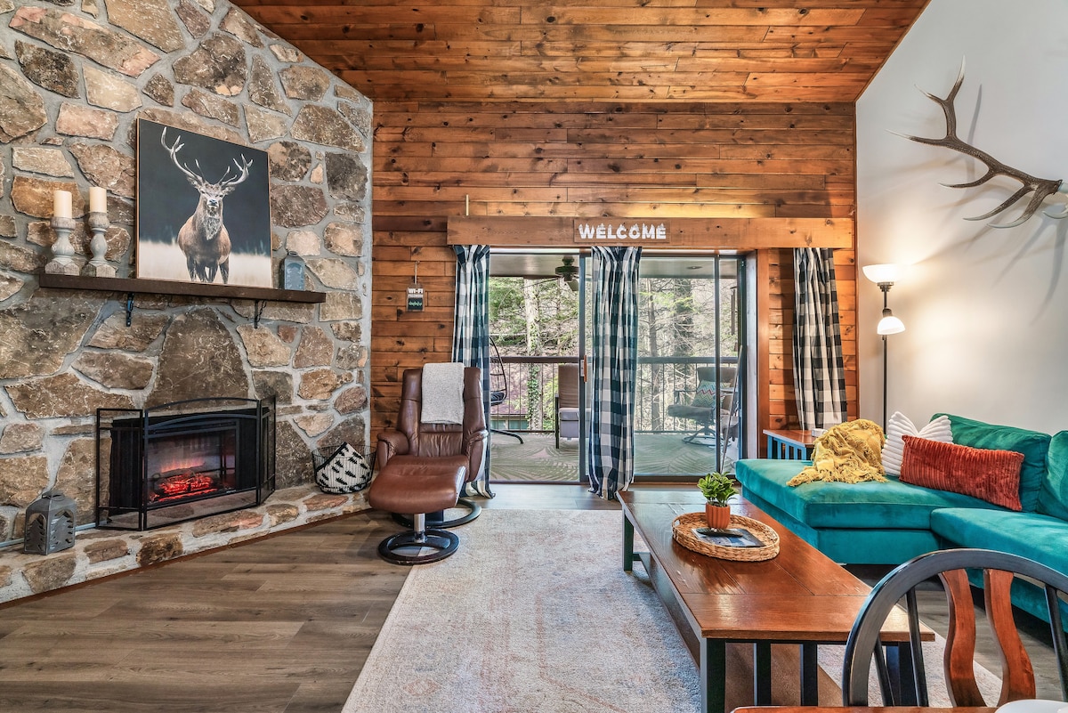 Just admit it, you've always wanted to see the Smokies staying in a space that's totally 1974. Those earth tones, textures and an awesome buck lamp...hey, there's a shag rug! You've found the perfect place to spend the 70s as you ponder wearing bell-bottoms to hike LeConte, "Godfather Part II", Watergate and how the internet might be in 40 years or so. You can think of whatever sitting on the retro deck chairs looking straight at the park. Or dont think at all and dream on the bed.