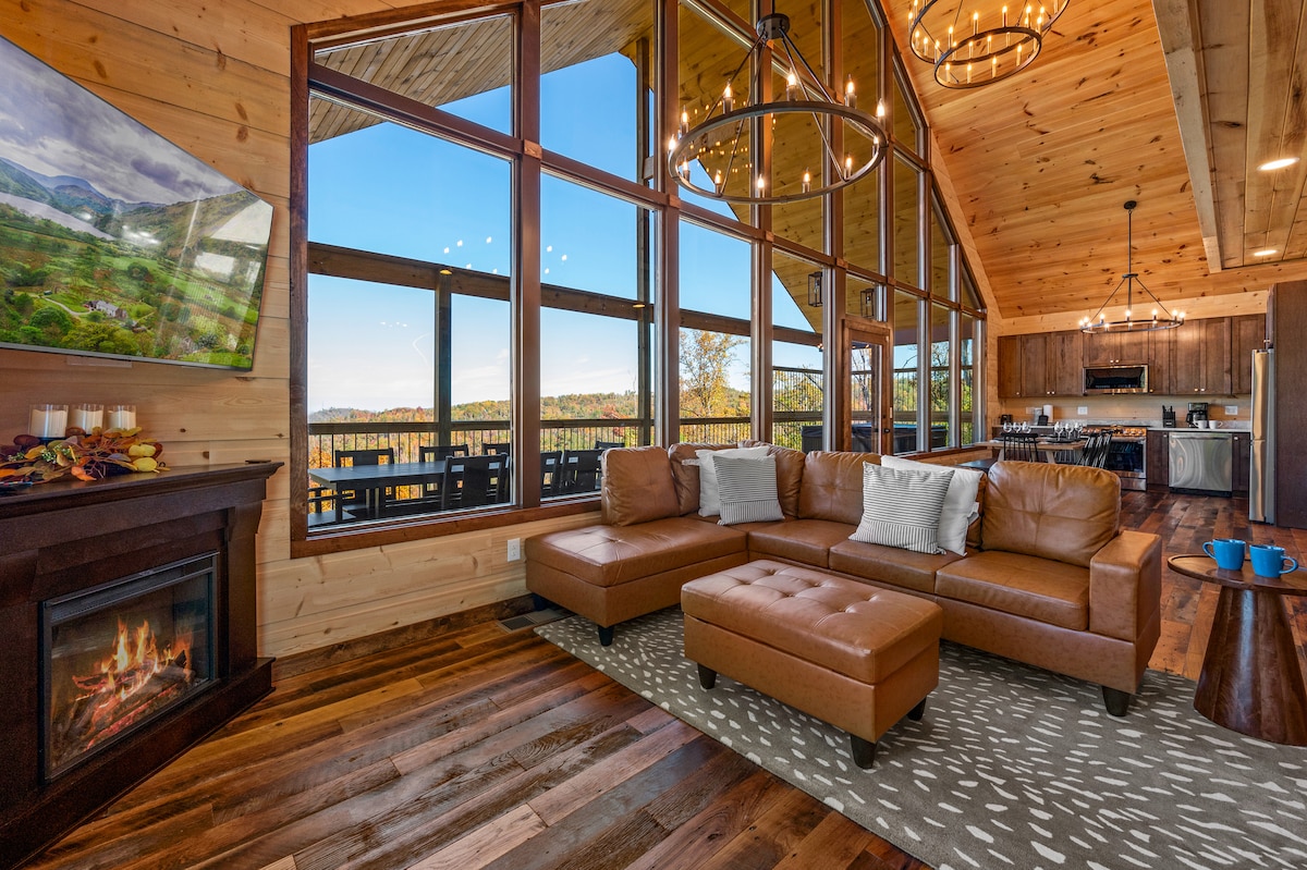 *NEW BUILD (May 2023)* 3 Bedroom/2 Full + 2 Half Bath Luxury Cabin situated in Chalet Village the most sought-after spot in Gatlinburg. Knock on Wood Cabin is perfectly located in the Great Smoky Mountains, just 2.9 mi to Downtown Gatlinburg, 0.5 mi to a Clubhouse Pool, 2 mi to Parkway, 2 mi to Gatlinburg Welcome Center. The cabin features Panoramic Views, a Game Room, 4 Fireplaces, 3 Covered Decks, and 2 Living Rooms. Experience pure relaxation in this charming Smoky Mountains cabin.