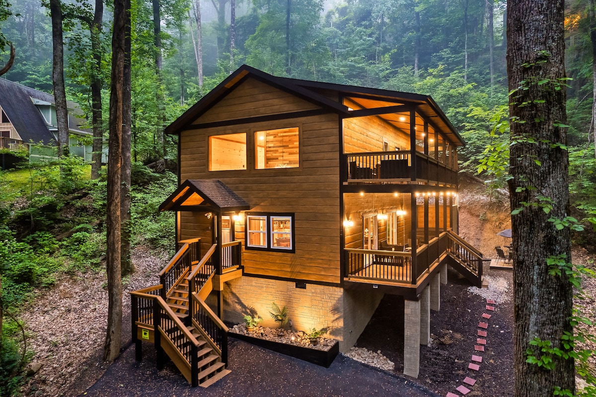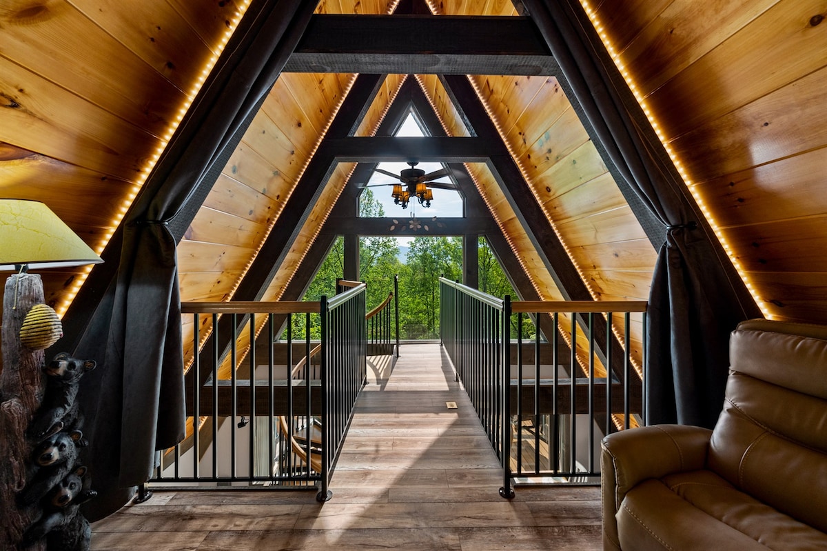 豪华小屋、景观、游戏室、热水浴缸、剧院!