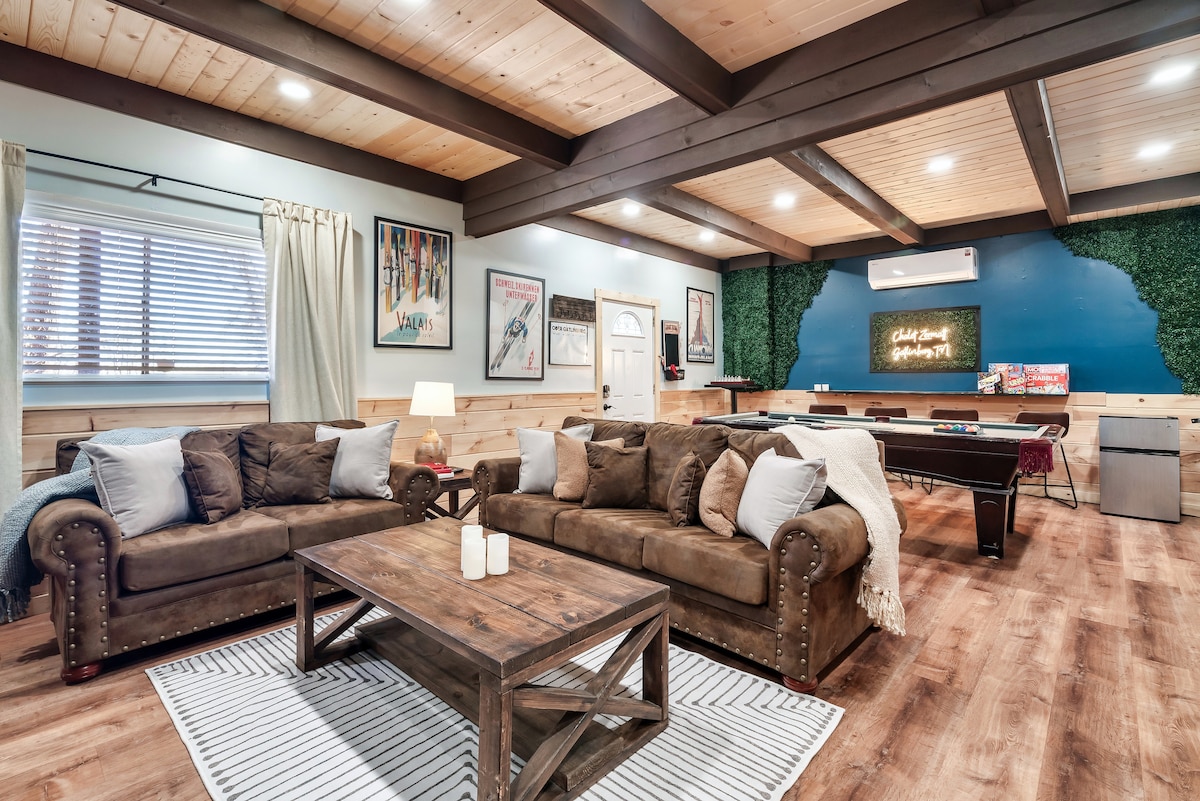 5卧室/5卫生间小木屋,靠近城镇/泳池,带热水浴缸、游戏室