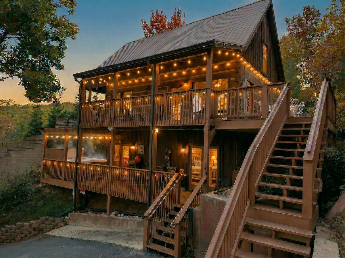 See why this cabin is Top 5% on Airbnb! Gorgeous, 1 mile to parkway and the Island! 2 spacious King Master Suites for a restful night. 2 full private bathrooms, sleeper sofa, sauna, hot tub, game room and fire pit! LOTS of amenities. You will love this open 1 level, 3 sets of French doors to the private balcony. Relax on the front porch with valley views or enjoy the hot tub in the large backyard space. The living space has high ceilings and a cozy fireplace for a retreat.