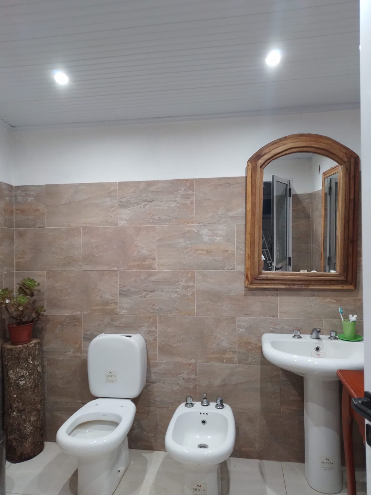Espacio bien iluminado con luces leds, cálidos farolitos, ventiladores y veladores. Es ideal para familia tipo, descansar, colgar una hamaca paraguaya y disfrutar del jardín, ver cuadros, esculturas y obras de arte en el lugar. Tiene lavadora, en el baño y tendederos bajo techo o al sol. Es posible preparar sus propios alimentos en la cocina que cuenta con utensilios, heladera y freezer. Posee un dormitorio privado con cama doble, AA, TV pantalla plana cable y dos camas individuales en estar.