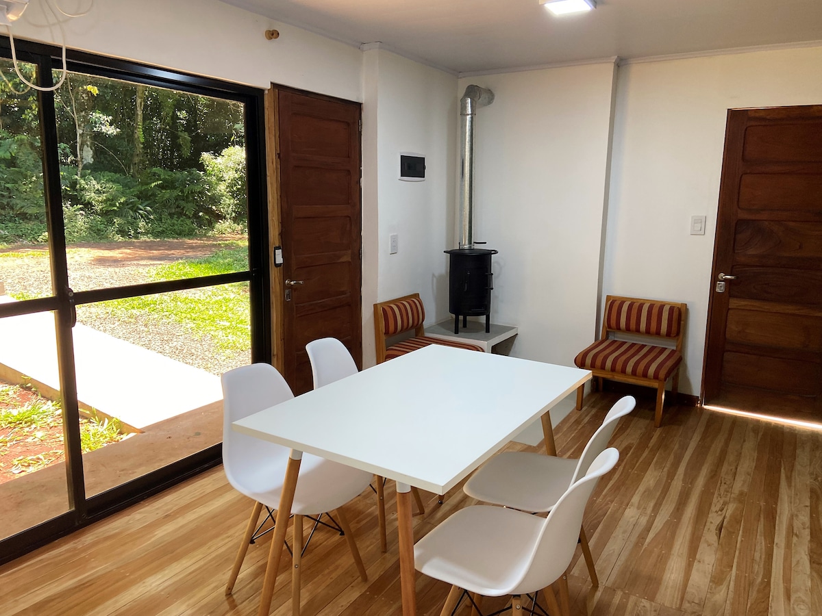 Cabaña completa perfecta para relajarse rodeado de naturaleza. Cuenta con dos habitaciones una cama matrimonial y dos camas simples. Cuenta con cocina completamente equipada con heladera, cocina a gas y todos los utensilios necesarios para preparar tus comidas durante la estadía. La cabaña también cuenta con ropa de cama y toallas. El alojamiento dispone de un garage techado. Además, el lugar es tranquilo y seguro, perfecto para disfrutar de la naturaleza y el aire libre.