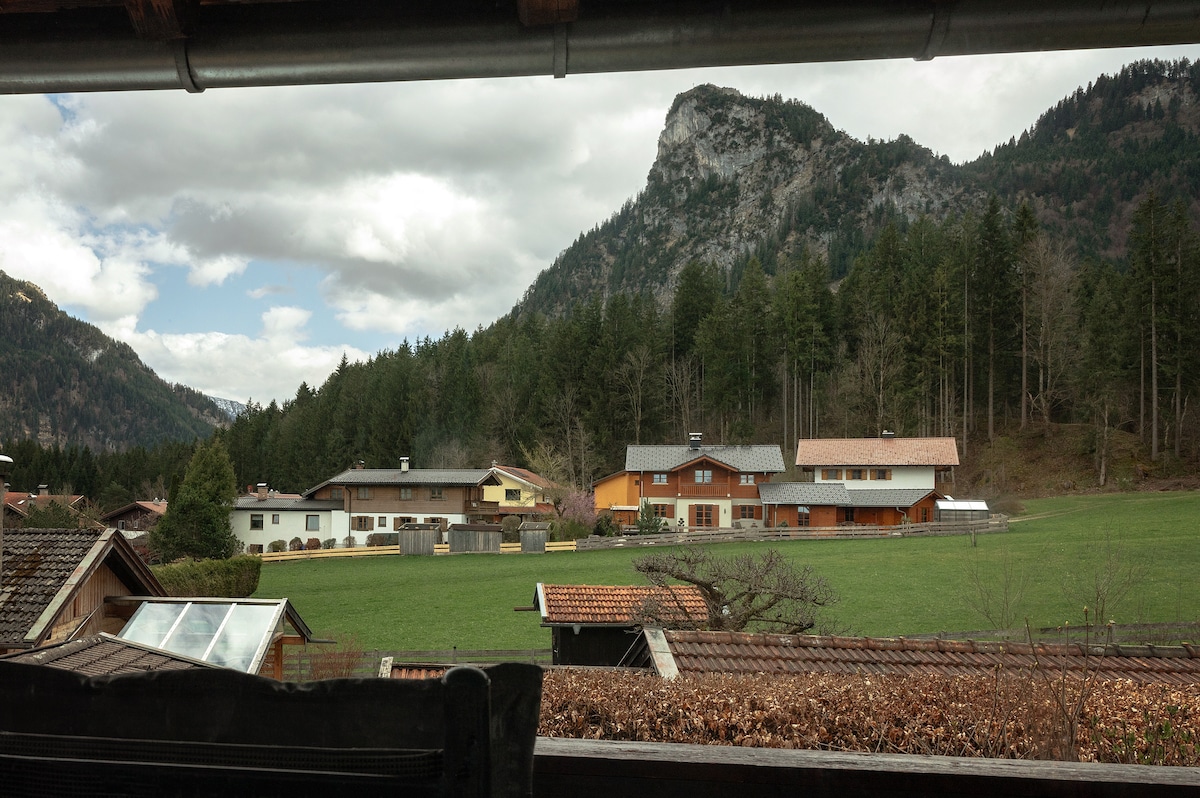 Hintergraseck is situated above the Partnachgorge in the mountains with magnificent nature. Elmau Castle(G7-summit) is the neighbor to the east, 4.5km away. Unique view of the mountains. Wonderful for hiking and relaxing. Perfect for couples seeking rest, mountain loving adventurers, families with children. ATTENTION not directly accessible by car. Parking at 2.8km. Luggage is transported. Parts of the route can be crossed by cableway. Free-running farm animals in the vicinity of the apartment